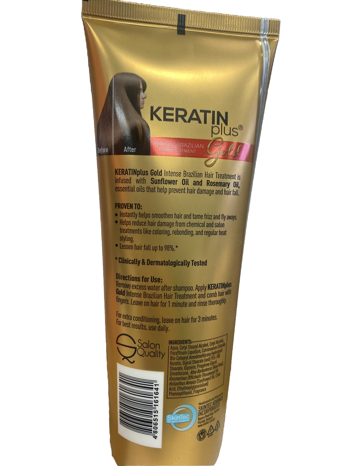 KERATIN PLUS Gold Intense Brazilian Hair Treatment 1pc Tube 200g FREE SHIPPING