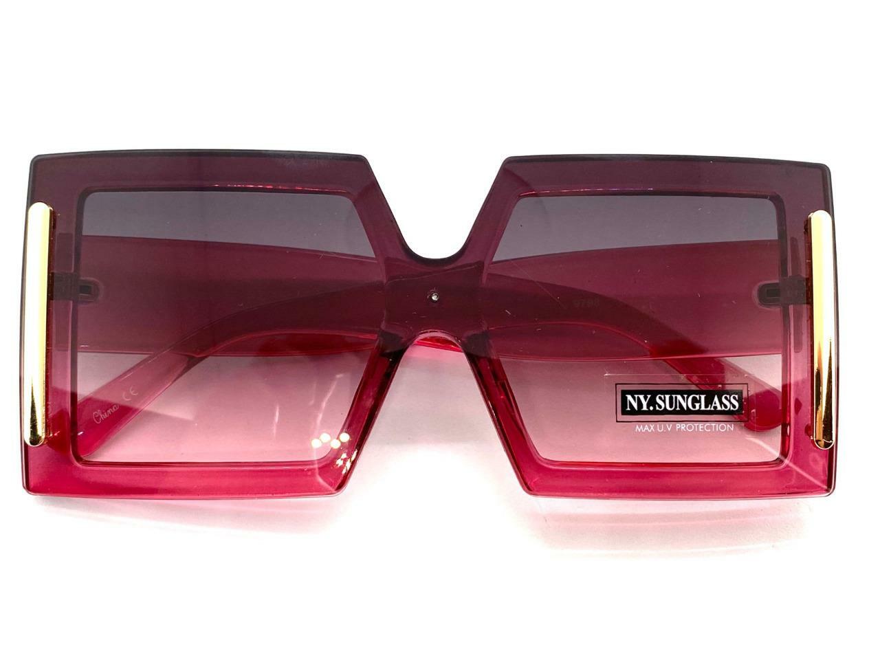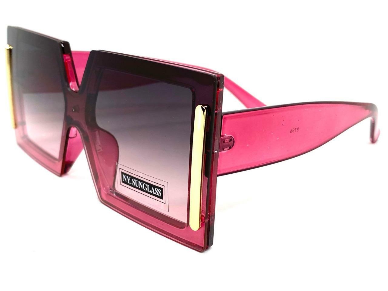 как выглядит Oversized Modern Retro Style SUNGLASSES Large Square Big Fuchsia Frame Flat Lens фото