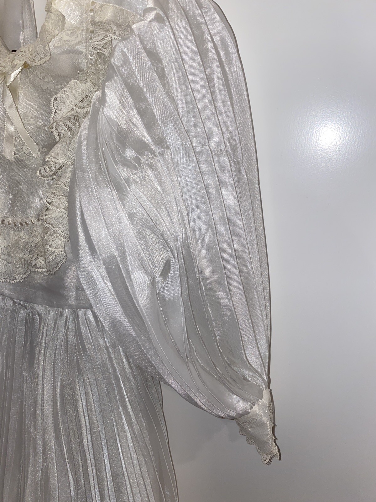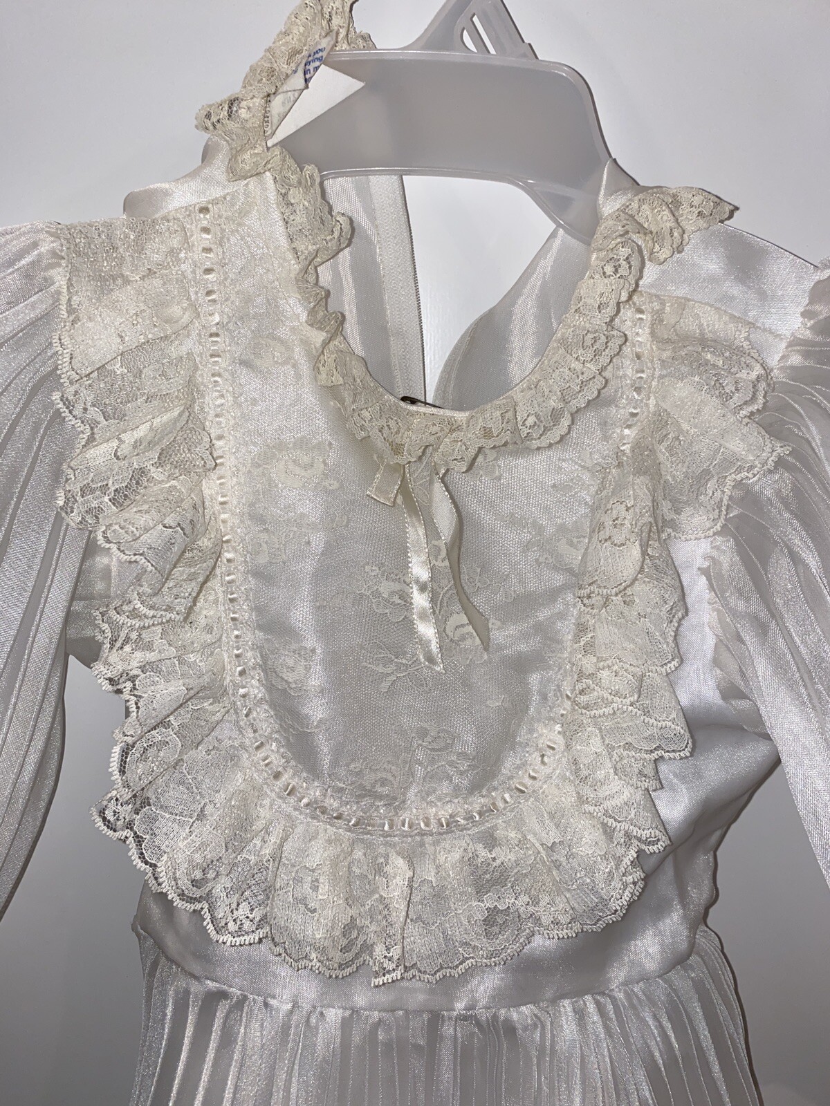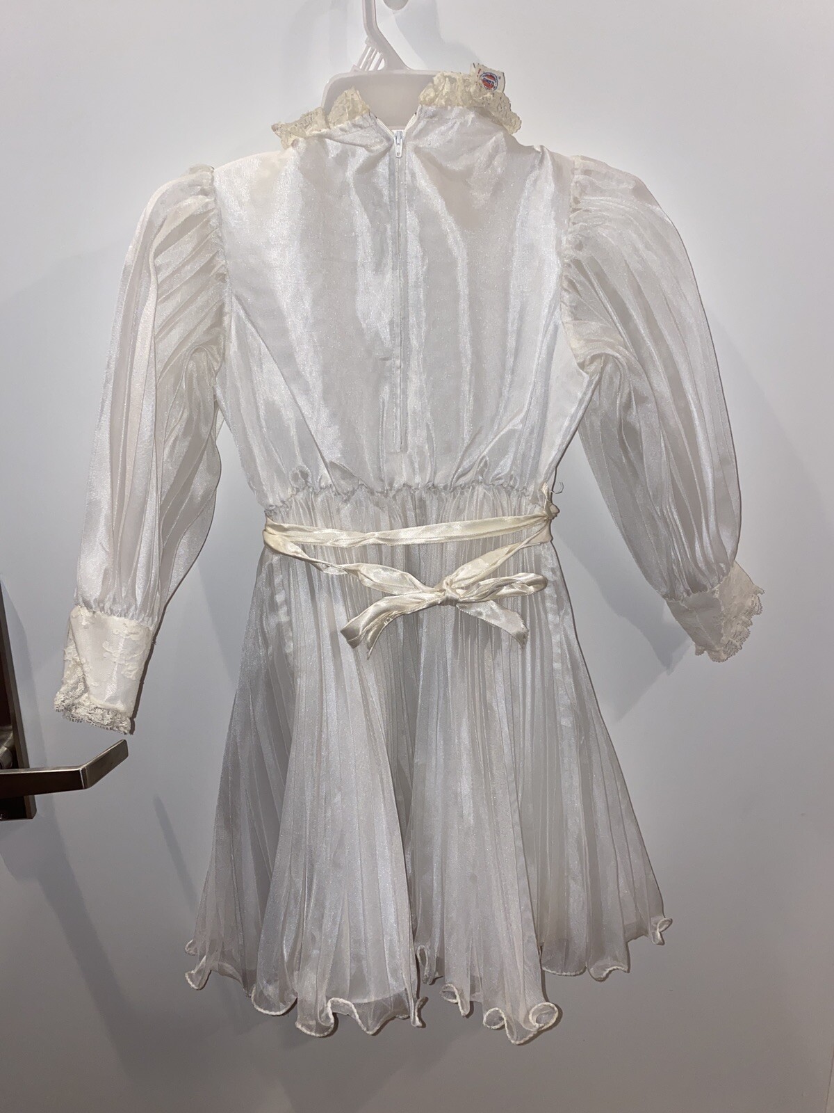 как выглядит Vintage Merry Girl White Sheer Ruffle Lace Girls Party Dress 7 Pageant Tiara фото