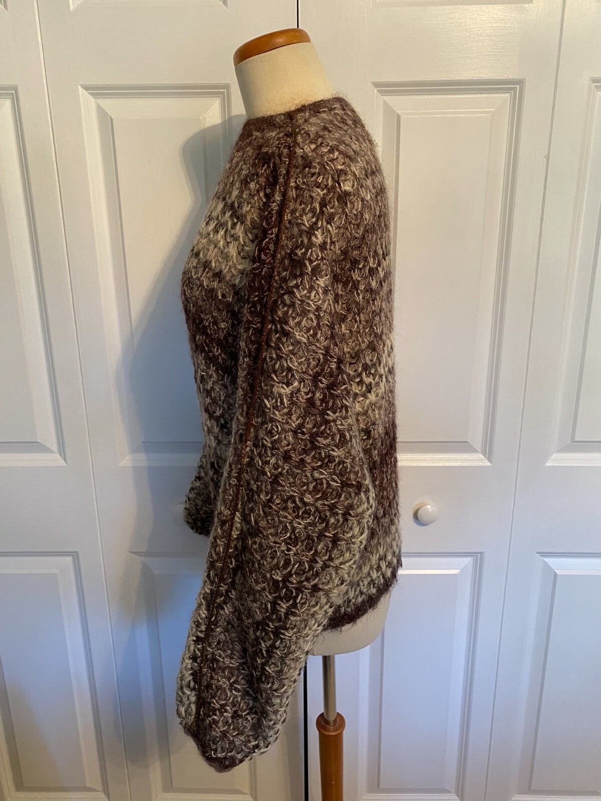 Vtg 1980s Ladybug brown white batwing dolman sleeve wool pullover sweater Sz M