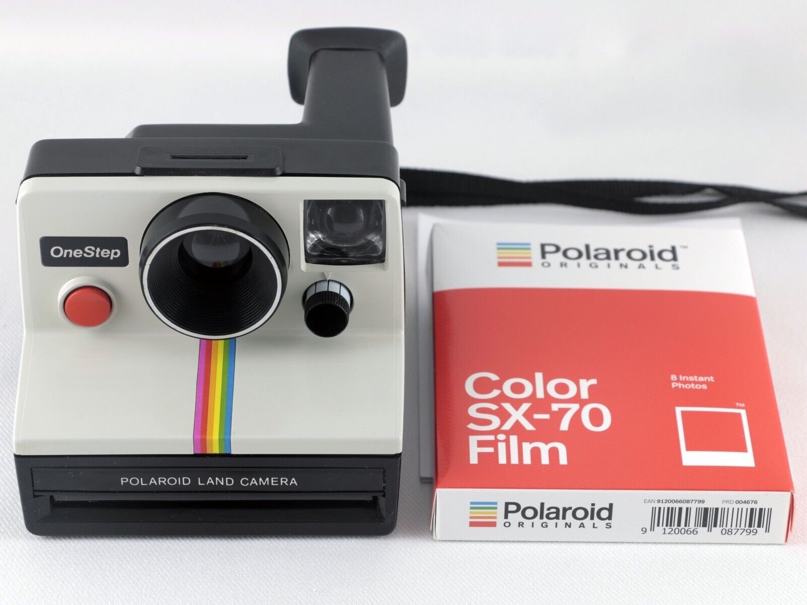 Vintage Polaroid SX-70 OneStep White Rainbow Stripe Instant Camera Film TESTED