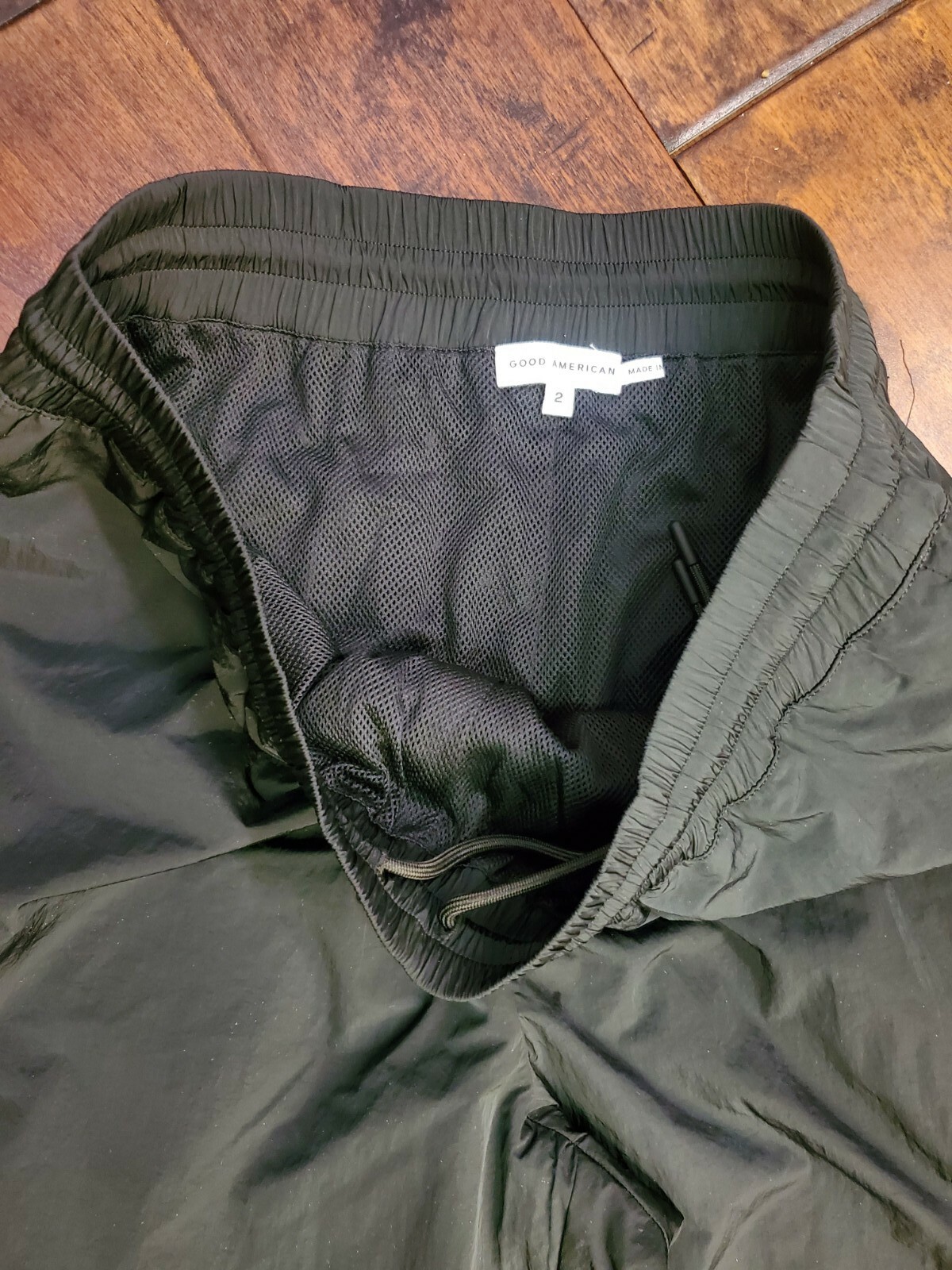 как выглядит Good American High Rise Track Pants Wide Leg Zipper Hem -BLK- Size 2 NWT фото
