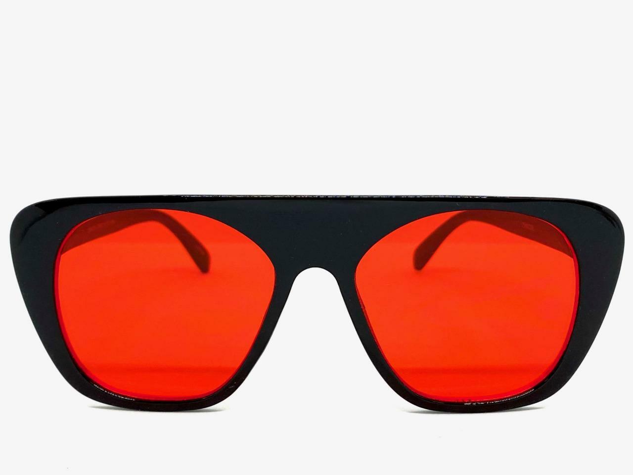 Mens or Women Classic Vintage Retro Style SUNGLASSES Unique Black Frame Red Lens