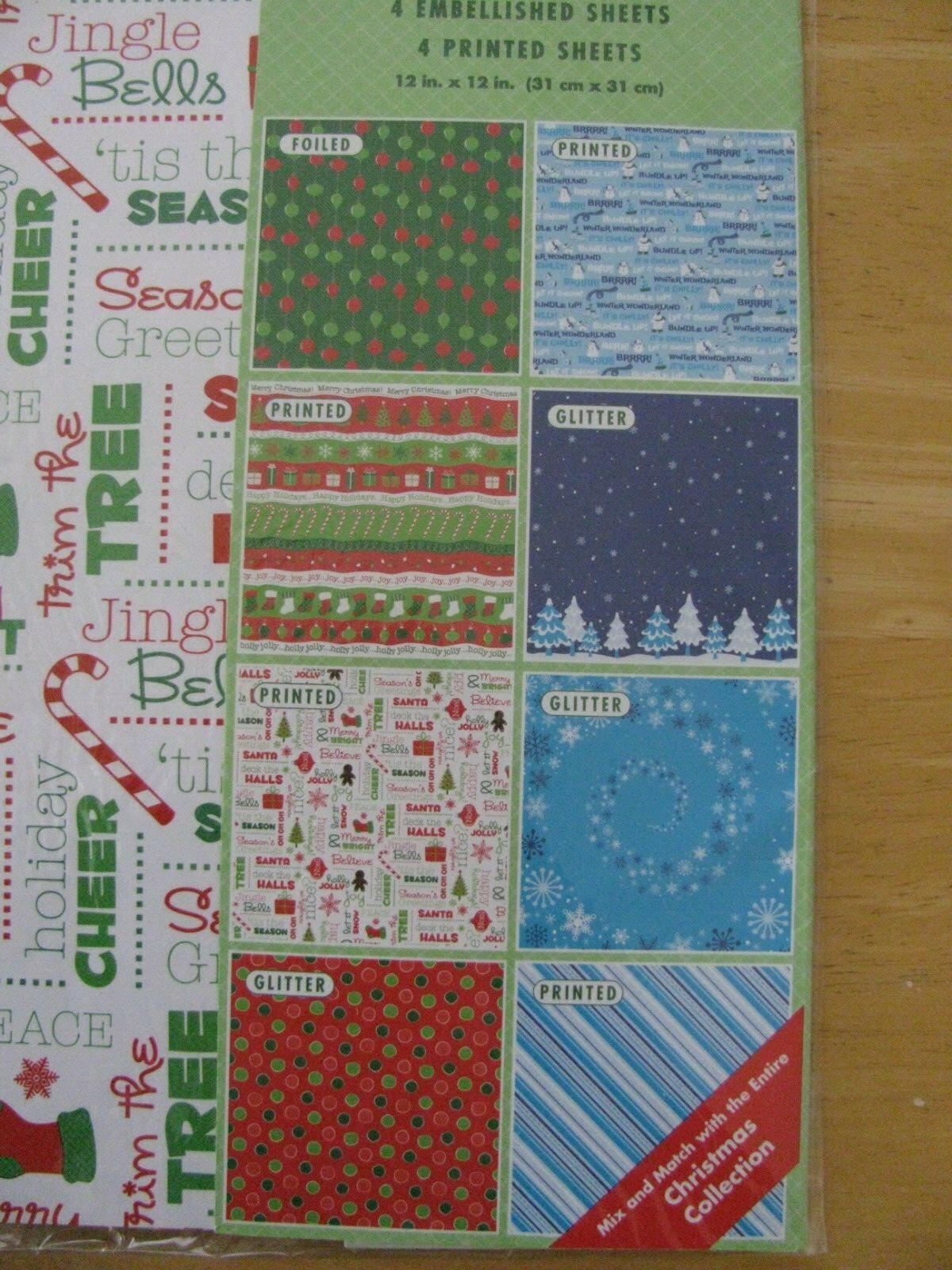 8 Pieces CHRISTMAS COLLECTION 12 X 12 Scrapbook Paper NIP