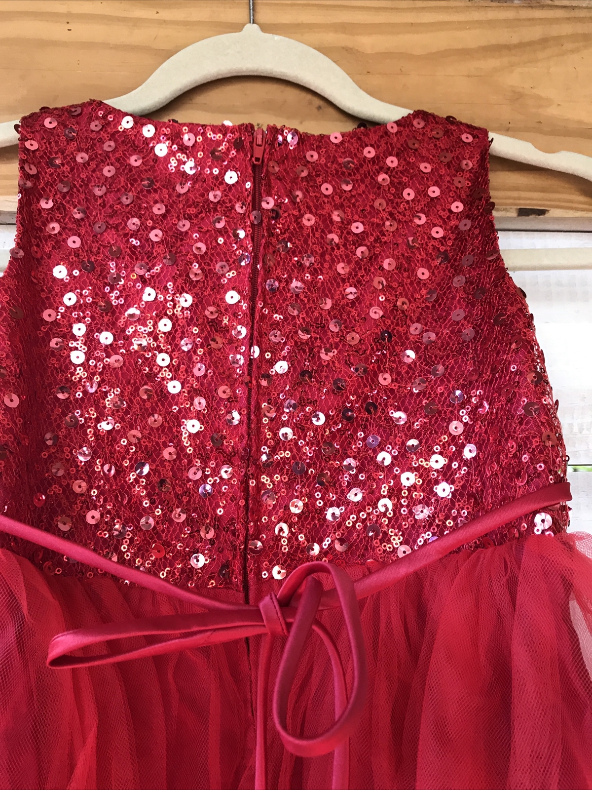 как выглядит Kids Dream Girl Sz 7-8 Dress Red Sequins Sparkle Tulle Floral Christmas Dressy фото