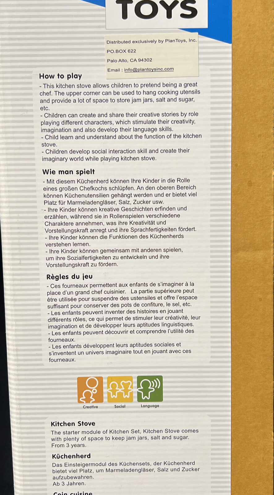 Plan Toys Wooden Kitchen Stove 3538 3y assembly required New