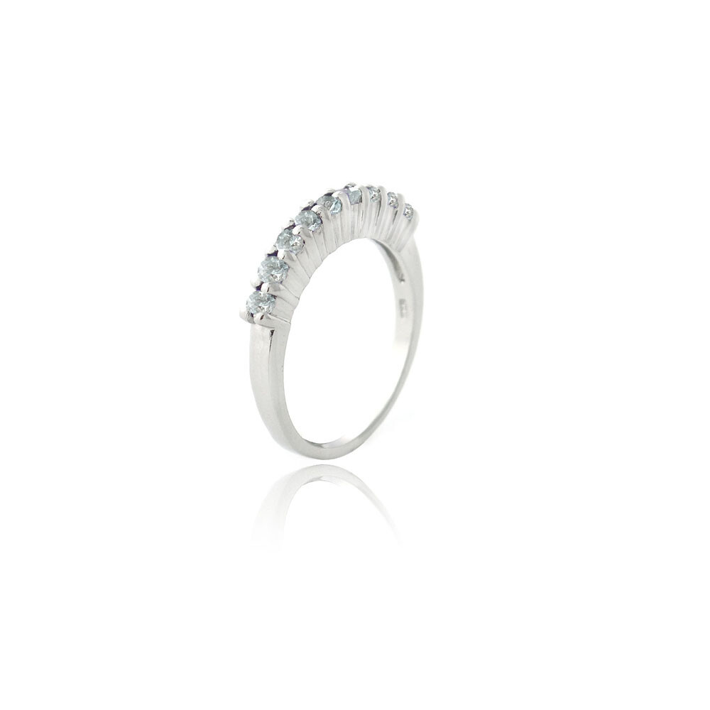 как выглядит 925 Silver Blue Topaz Semi-Eternity Band Ring Size 8 фото