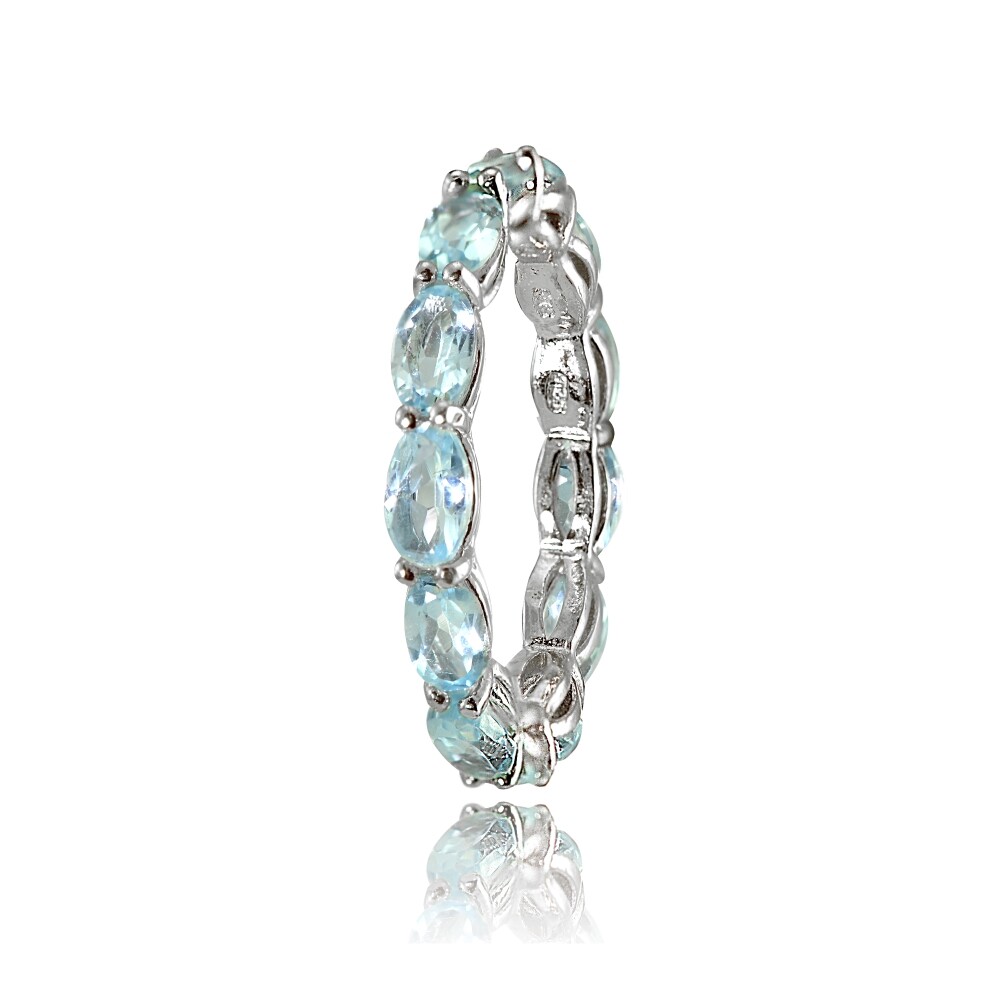 Sterling Silver Blue Topaz 5x3mm Oval-cut Eternity Band Ring, Size 10