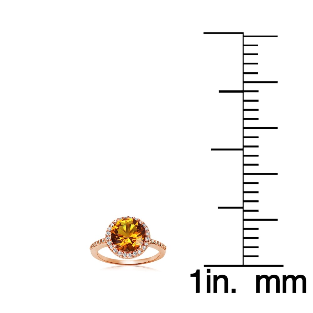 как выглядит Round Simulated Citrine Cubic Zirconia Ring in Rose Gold Plated Silver, Size 5 фото
