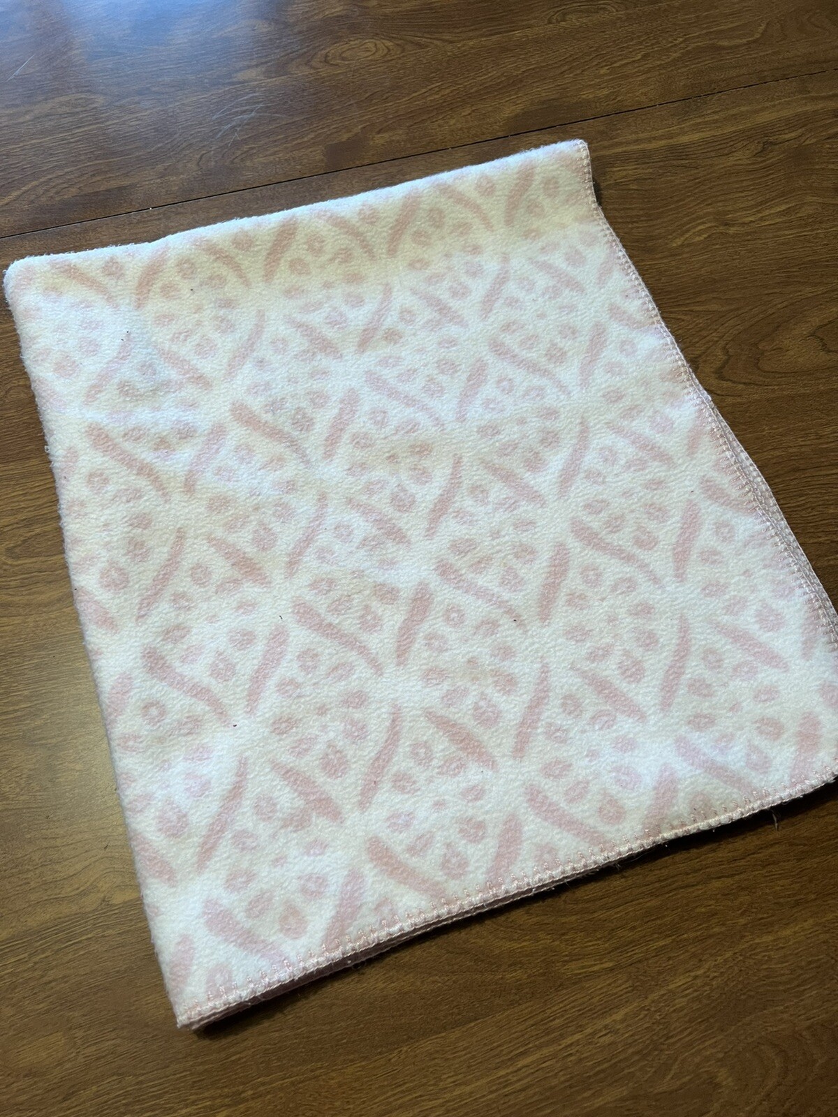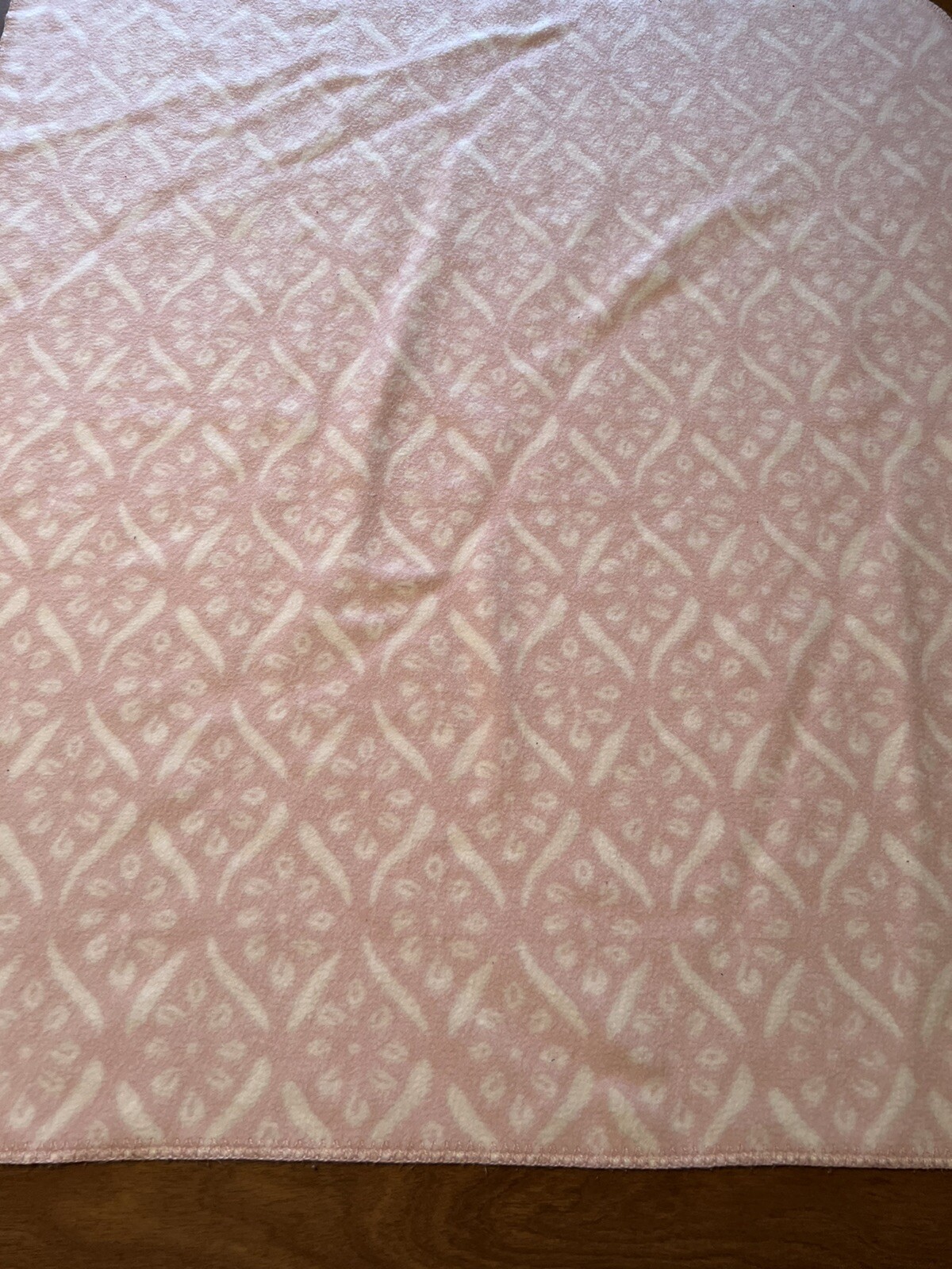 как выглядит POTTERY BARN KIDS Pink and White Baby Toddler Blanket Flannel Dots Lines фото