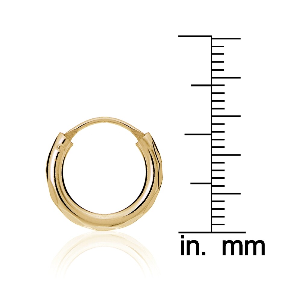 Gold Tone over Sterling Silver 2mm Diamond-Cut Endless Hoop Earrings, 15mm
