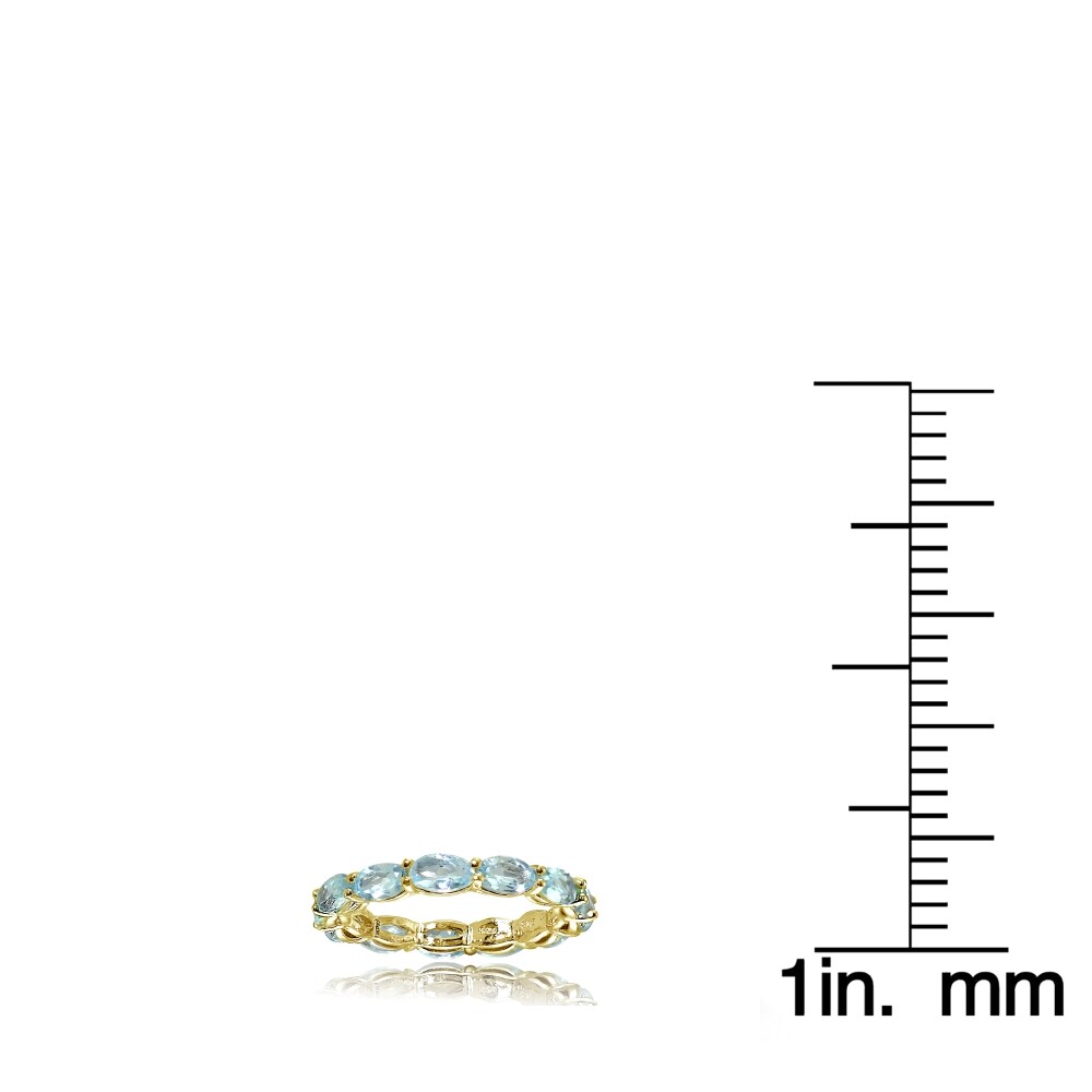 Yellow Gold Flashed Silver Blue Topaz 5x3mm Oval-cut Eternity Band Ring, Size 7