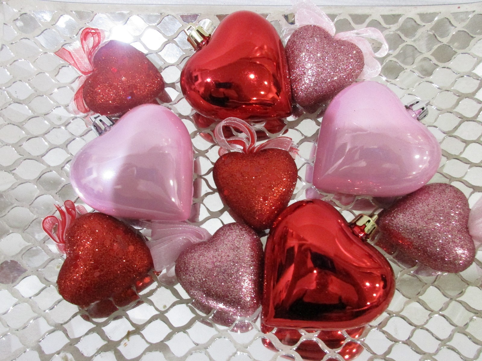 Valentine's Pink Red Glitter Hearts 3 2 Ornaments Decorations Set of 10