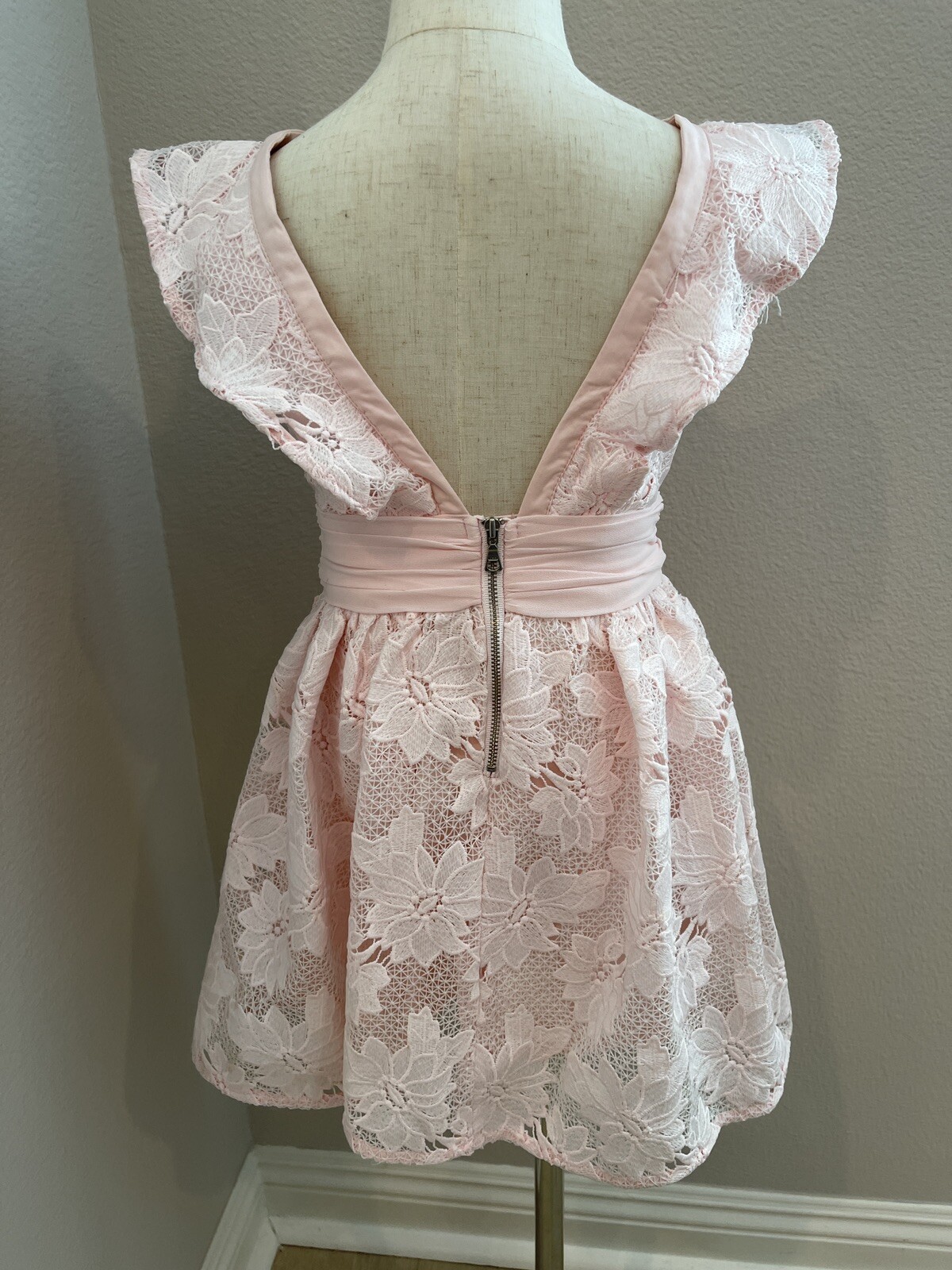 как выглядит Girls Bardot Pink Lace Flower Dress Size 6 фото