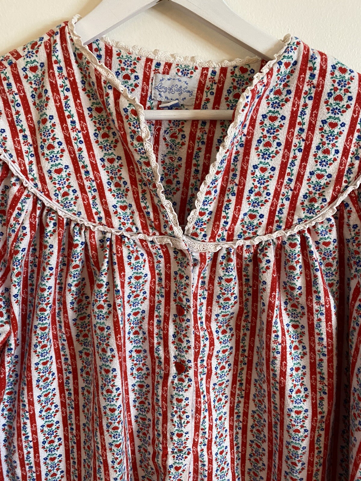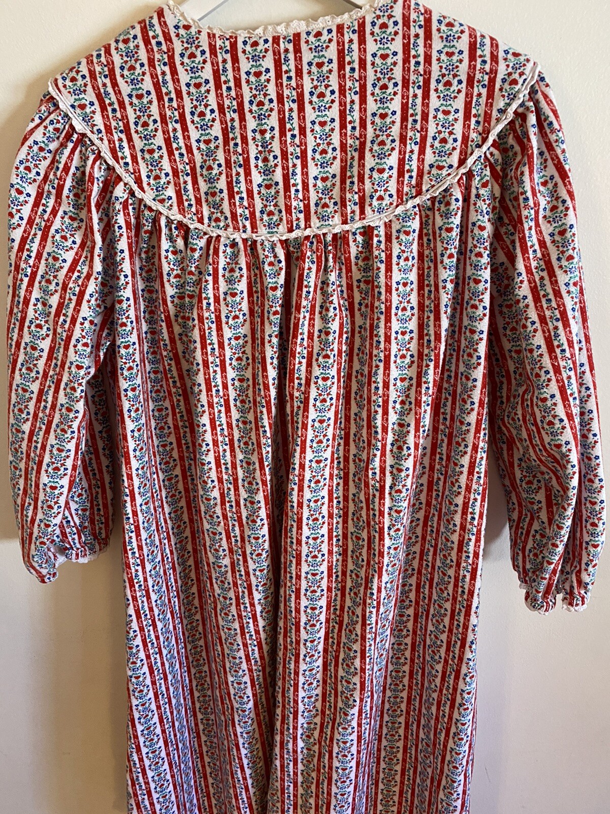 Vintage Lanz of Salzburg Flannel Nightgown Heart Buttons Eyelet Red White Large