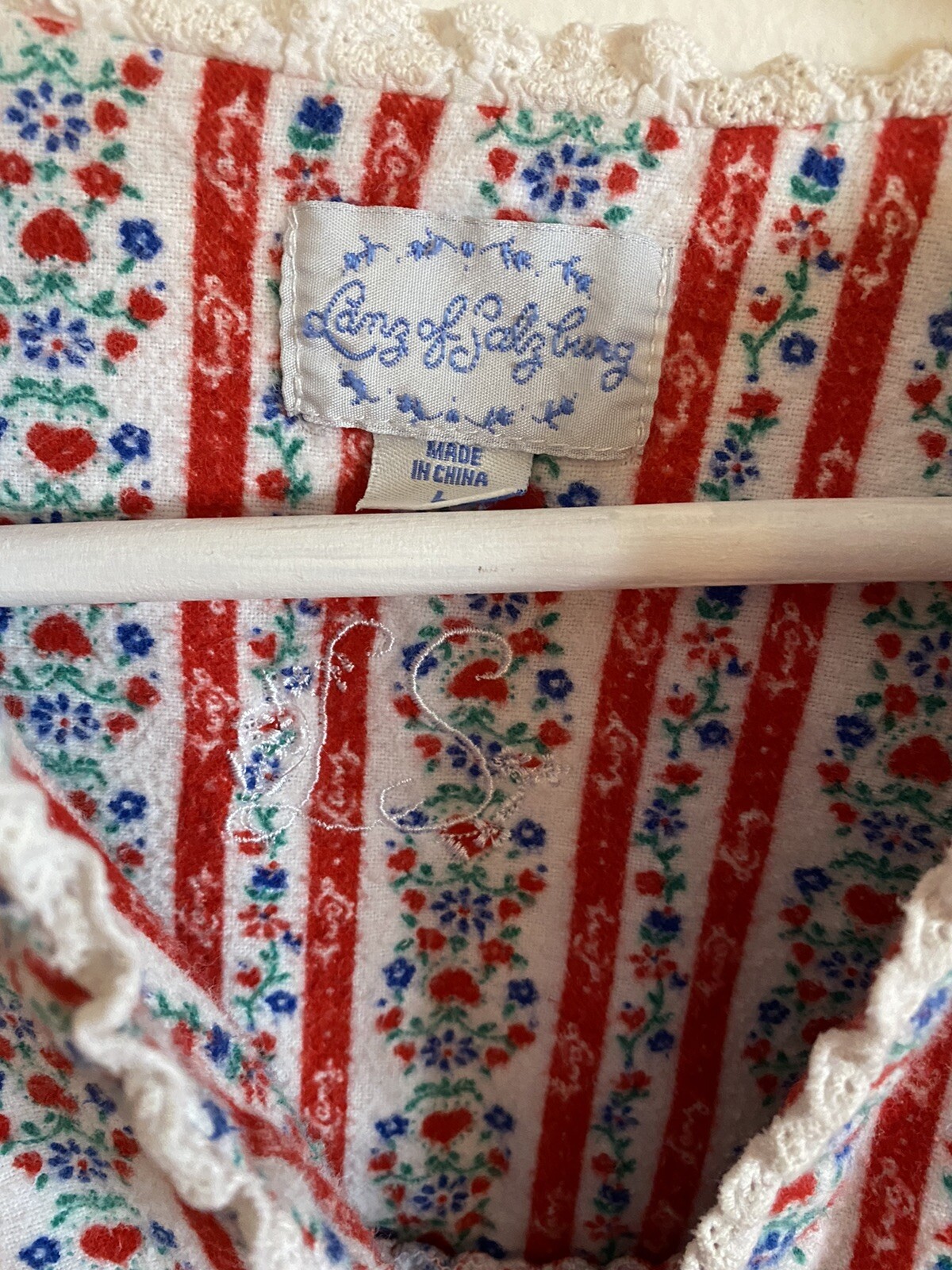 как выглядит Vintage Lanz of Salzburg Flannel Nightgown Heart Buttons Eyelet Red White Large фото
