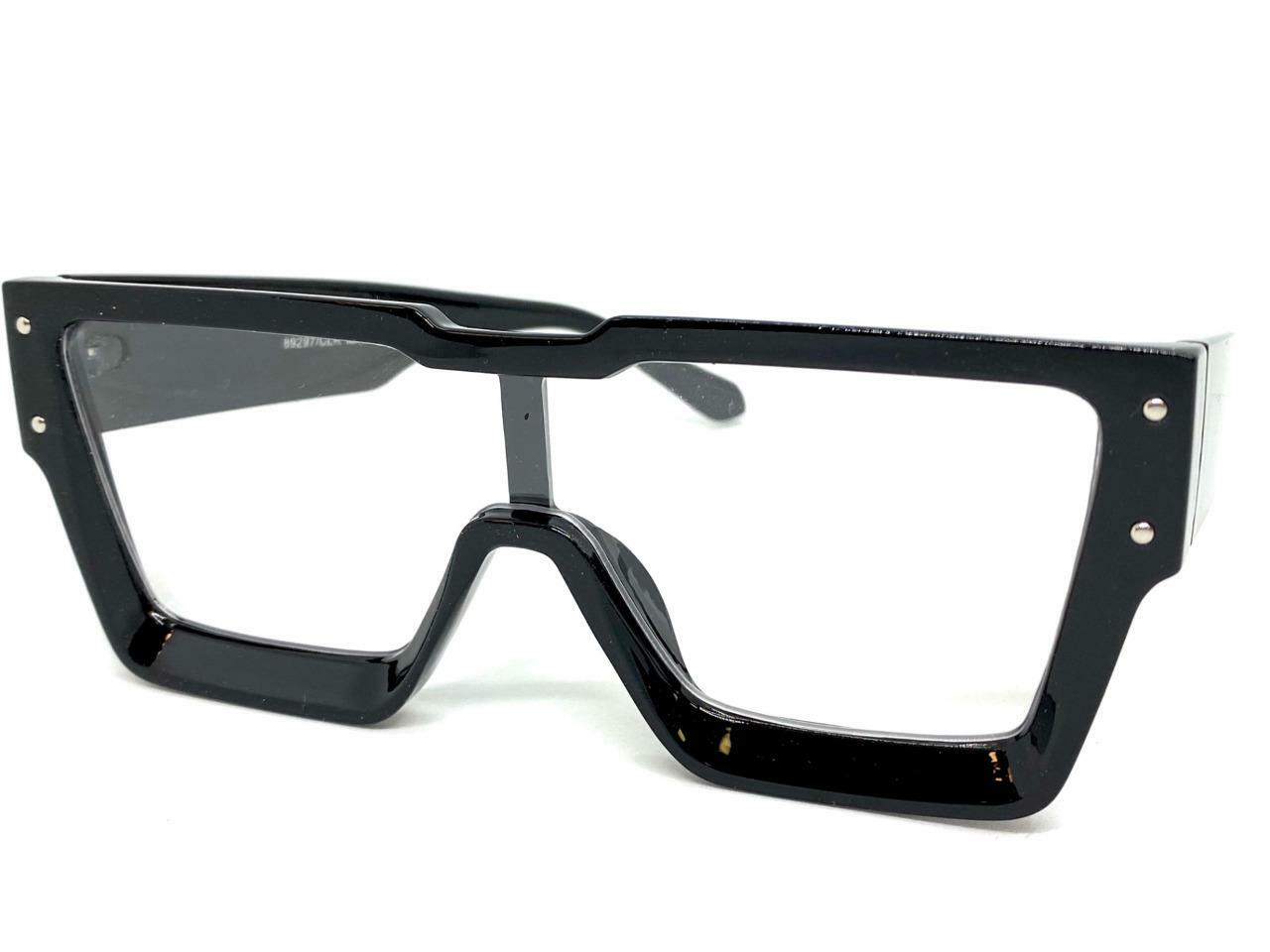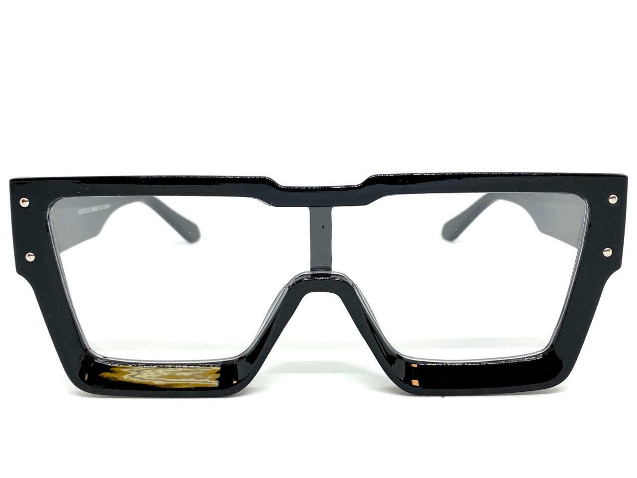 как выглядит OVERSIZED Modern Retro Shield Style Clear Lens EYE GLASSES Large Big Black Frame фото