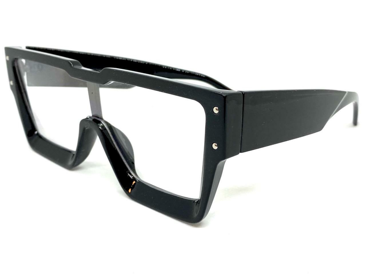 OVERSIZED Modern Retro Shield Style Clear Lens EYE GLASSES Large Big Black Frame
