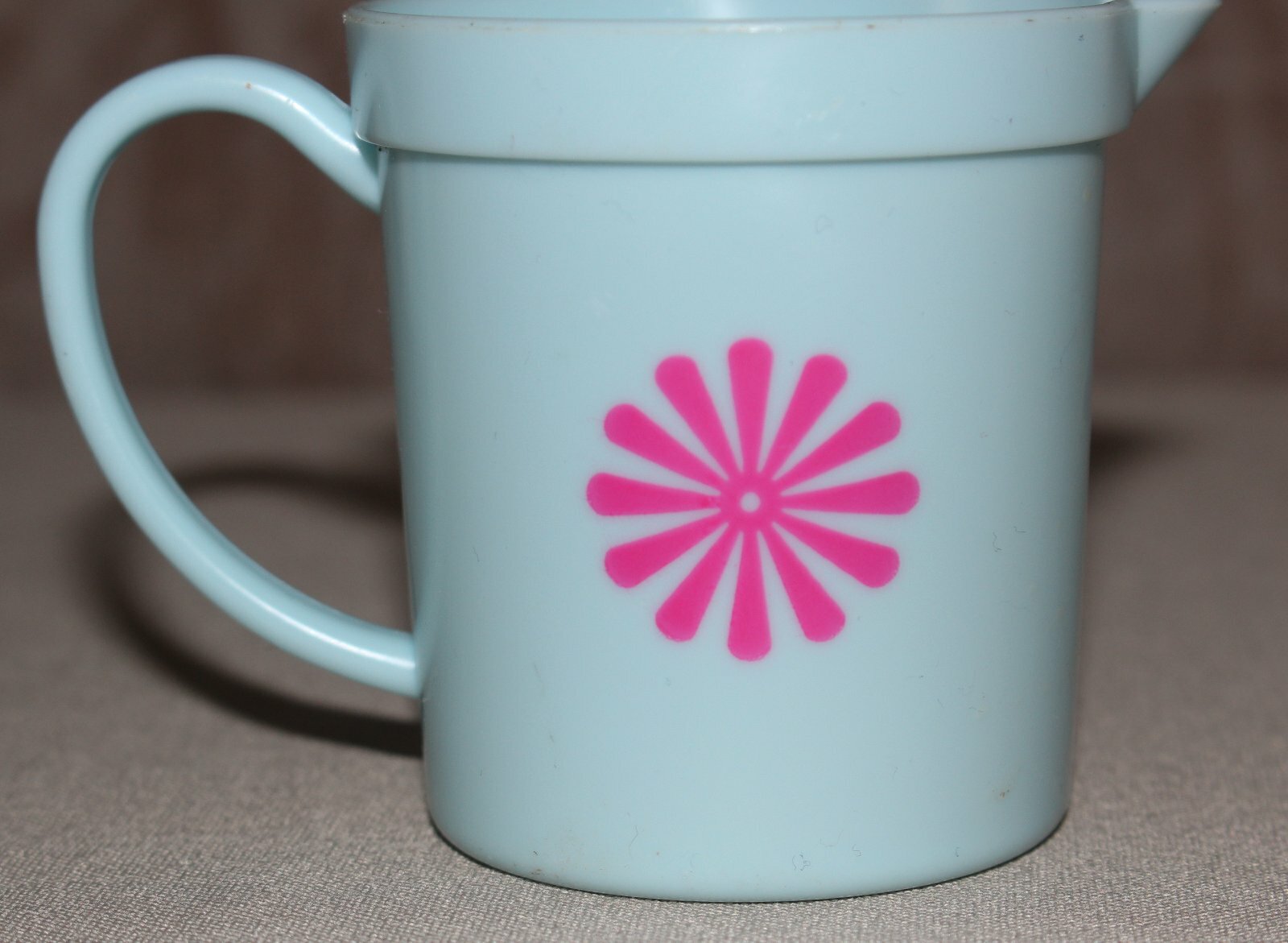 Vintage Plastic Toy Pitcher Blue Plastic Pink Flower 2 Tall
