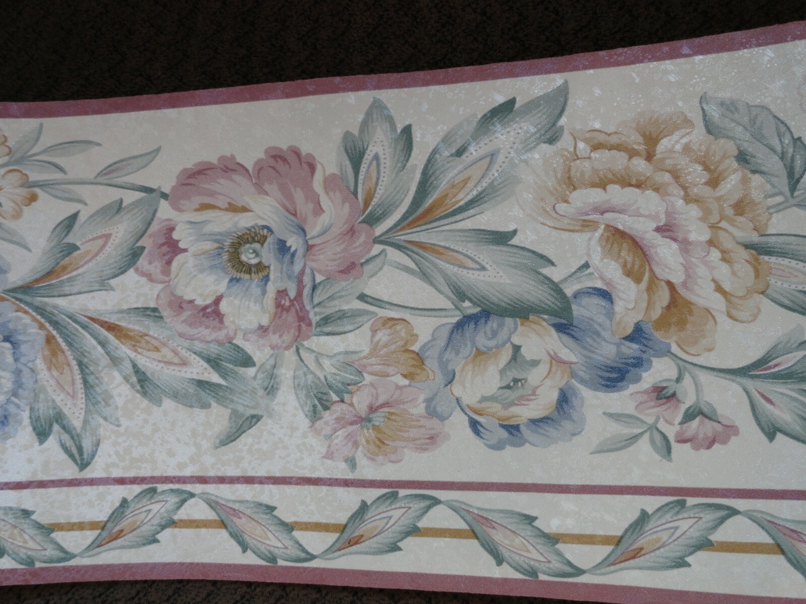 Lot of 2 Rolls WB5141 Wallpaper Border 5 x 5.4 Yards Rose, Blue Gold Flowers