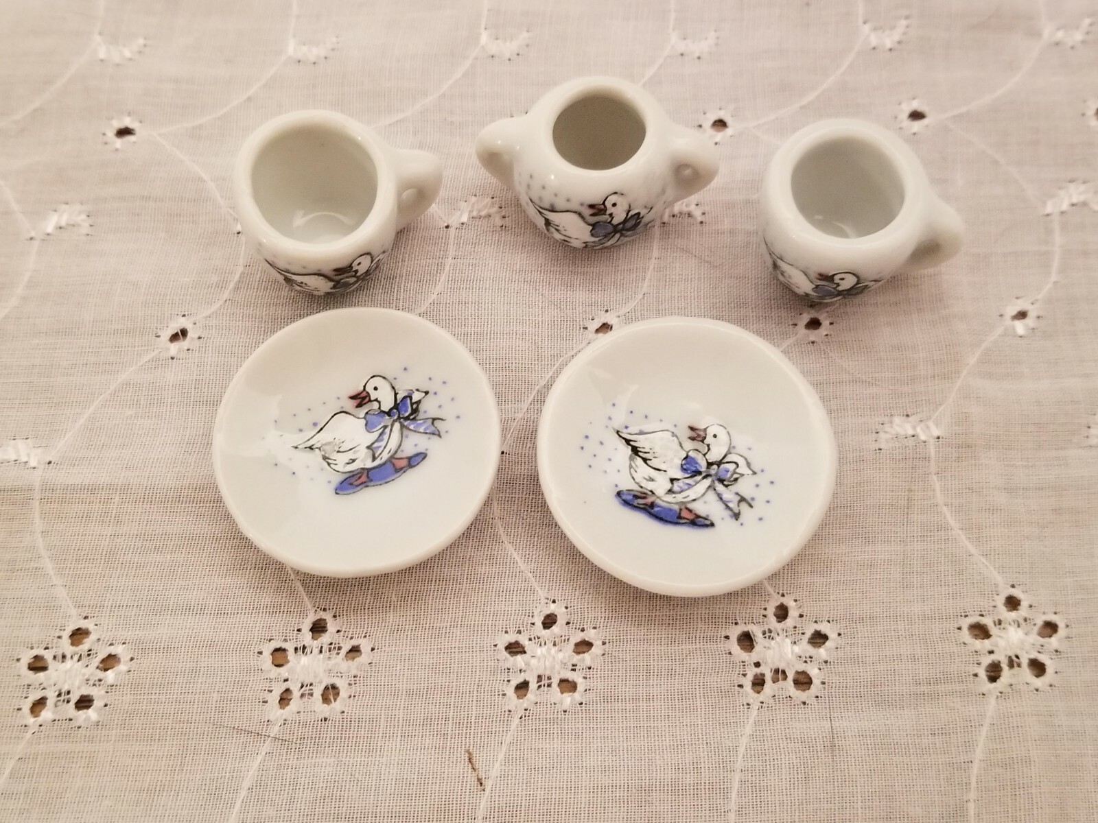 Toy Cups and Saucers with Sugar 1980's duck design