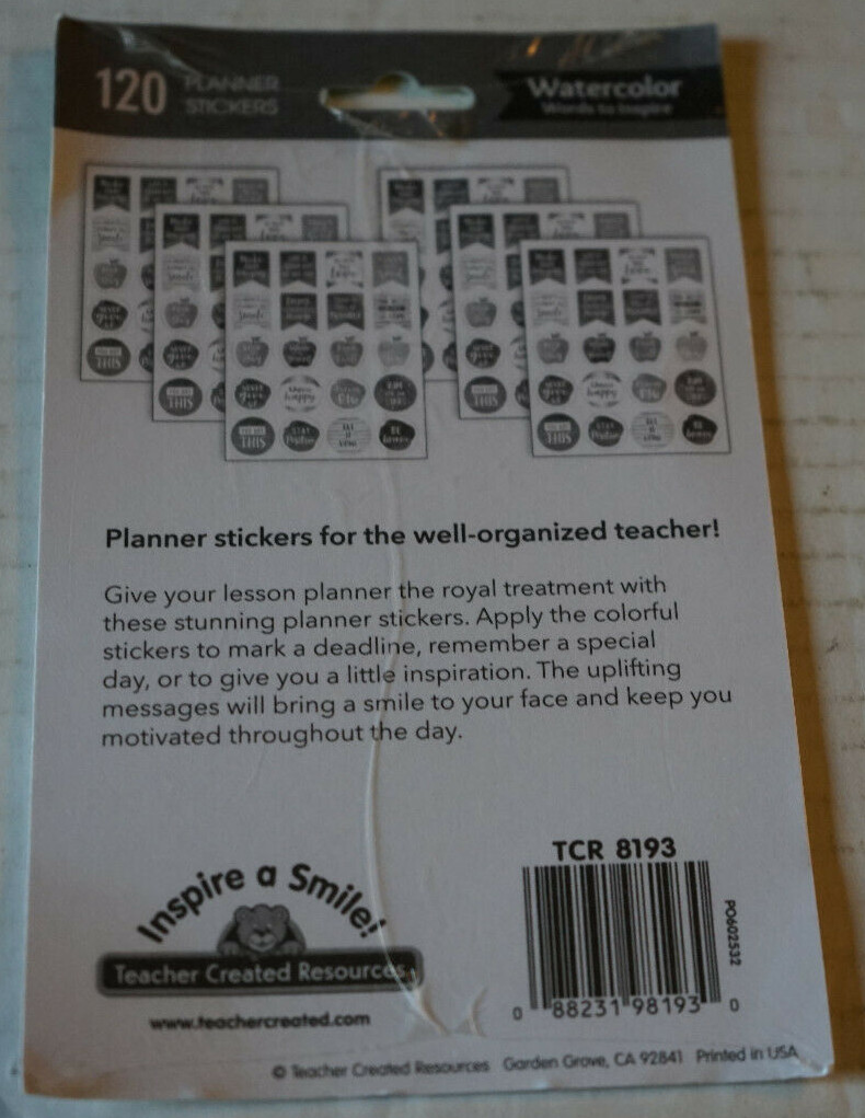 Teacher Created Resources Watercolor Words to Inspire 120 Stickers New Sealed