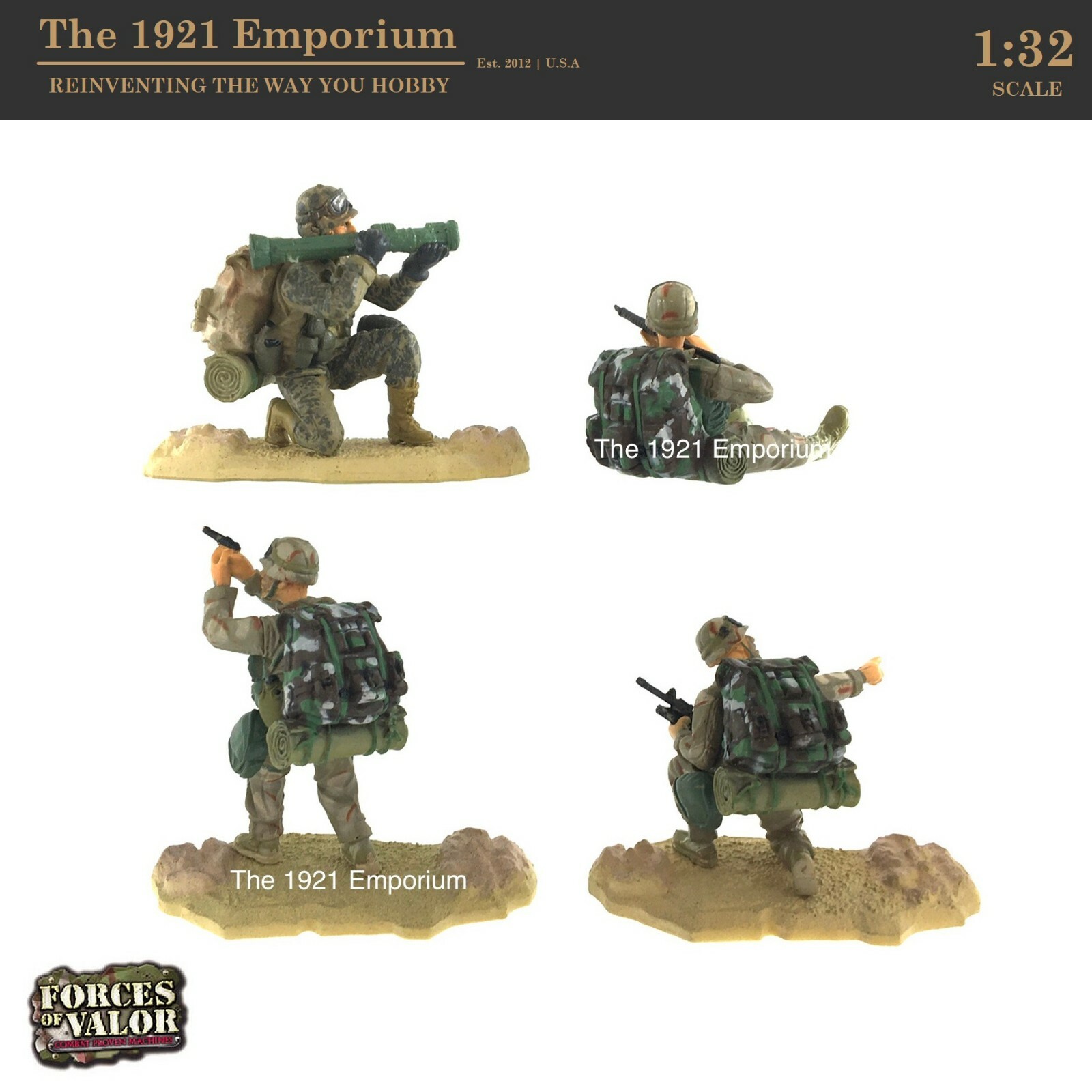 1:32 Unimax Toys Forces of Valor Modern US Army Desert Soldier 4 Figure Set