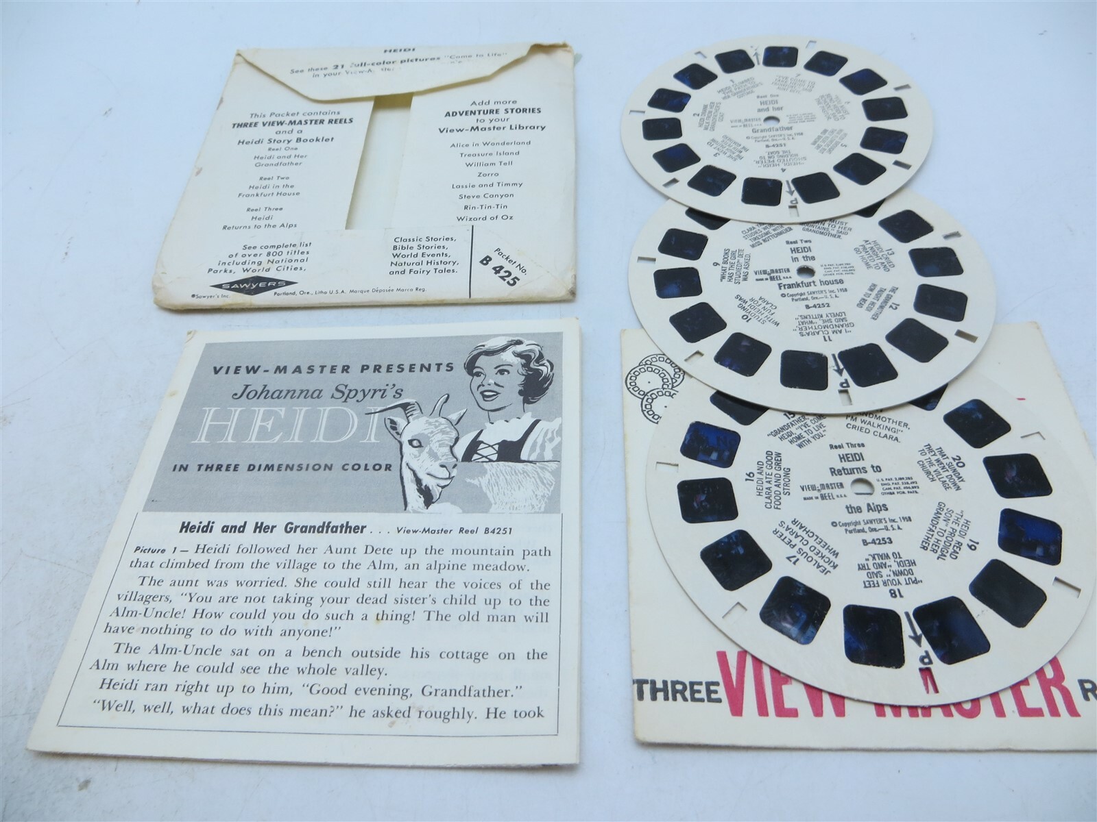 View Master B425, Heidi, Sawyer's, Children's 3 Reel Set w/Booklet