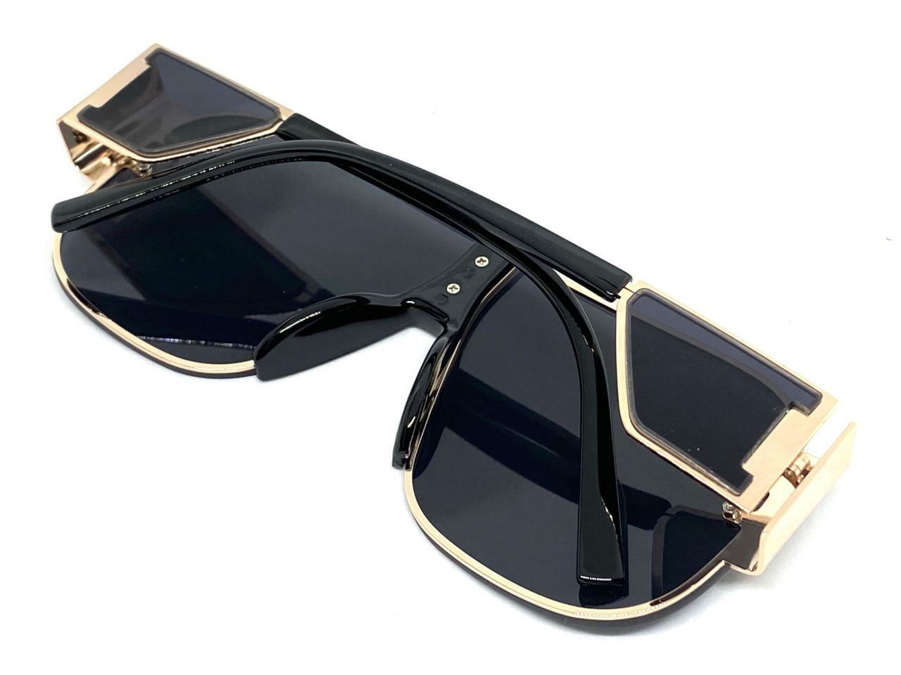 Oversize Classic Vintage Retro Style SUNGLASSES Large Gold Black Frame Dark Lens
