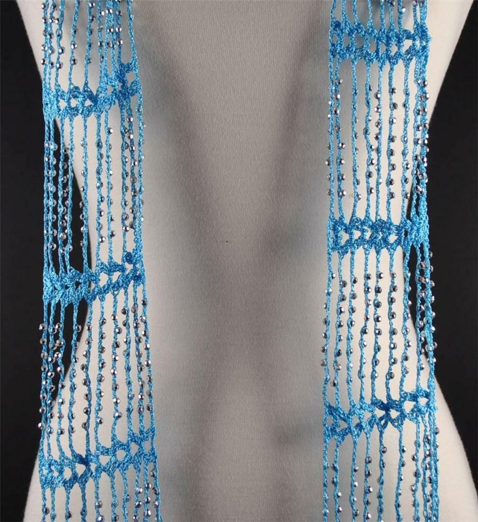 как выглядит Shawl Scarf Belt Blue Rhinestone Textured Viscose Loose Weave Crochet Fringe 66" фото