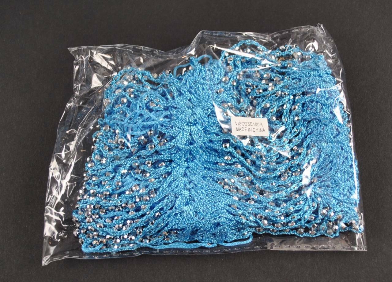 Shawl Scarf Belt Blue Rhinestone Textured Viscose Loose Weave Crochet Fringe 66