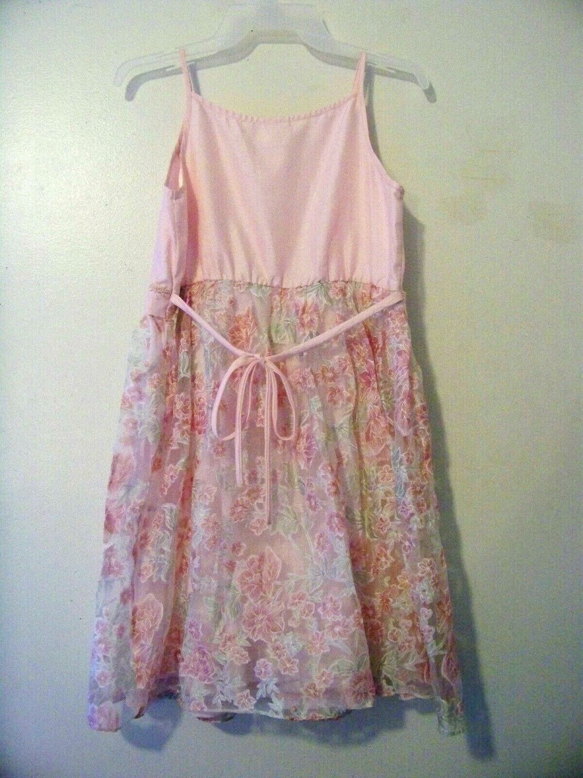 Girls Pink Floral Summer Dress Floral Sheer Skirt Size Large EUC