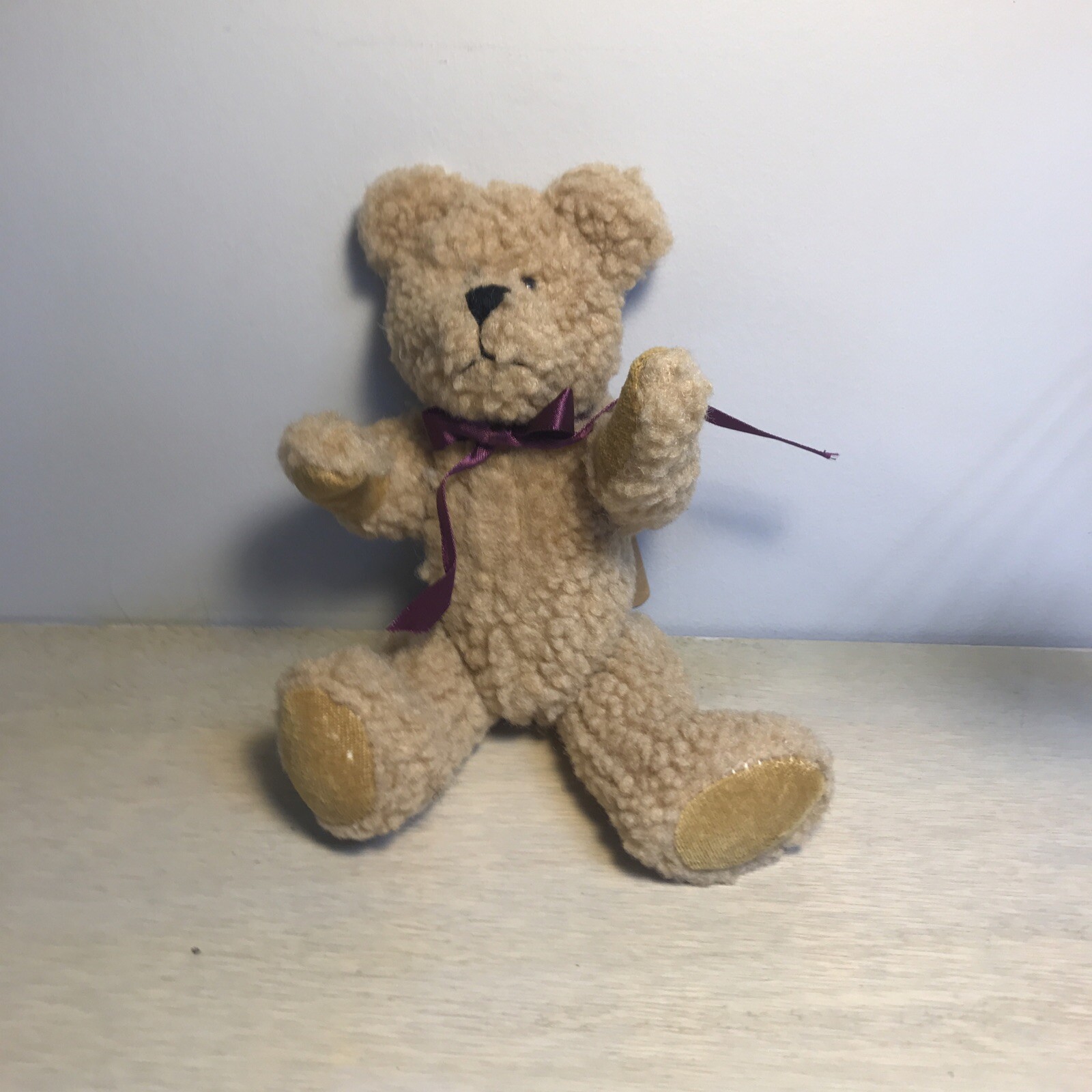 • Boyds BRUCE Plush 8.5" Bear Curly Beige/Caramel Color Burgundy Bow Vintage WT