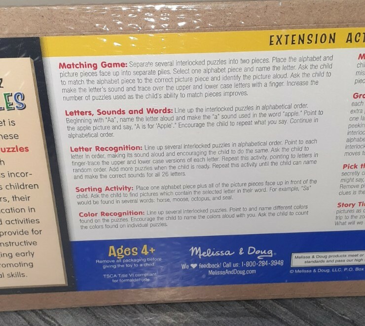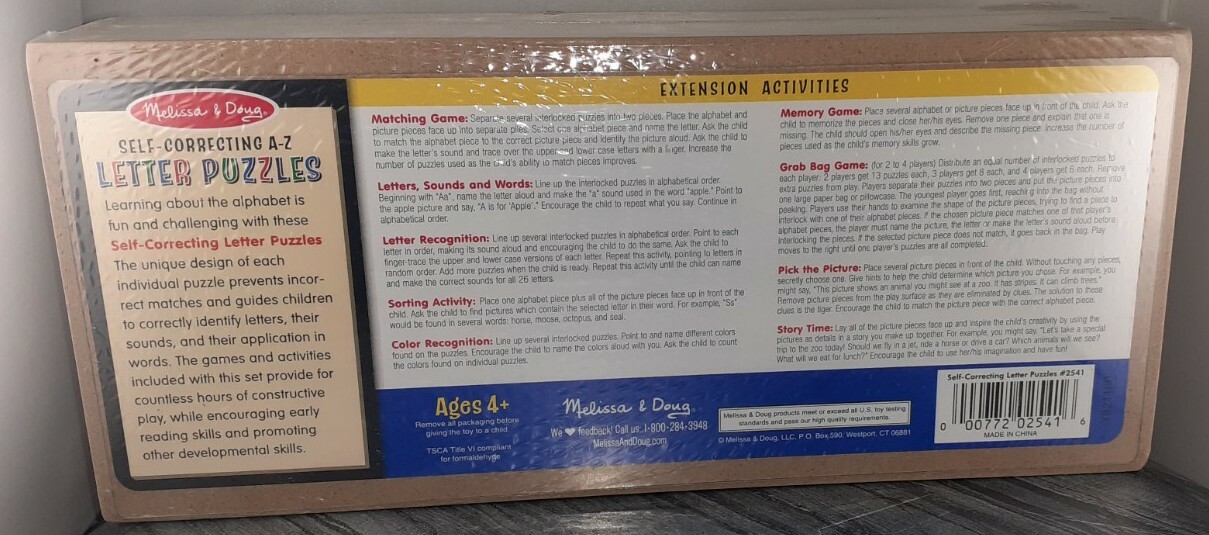 Self Correcting Melissa Doug Alphabet Learning Letter Jigsaw Puzzles Age 4
