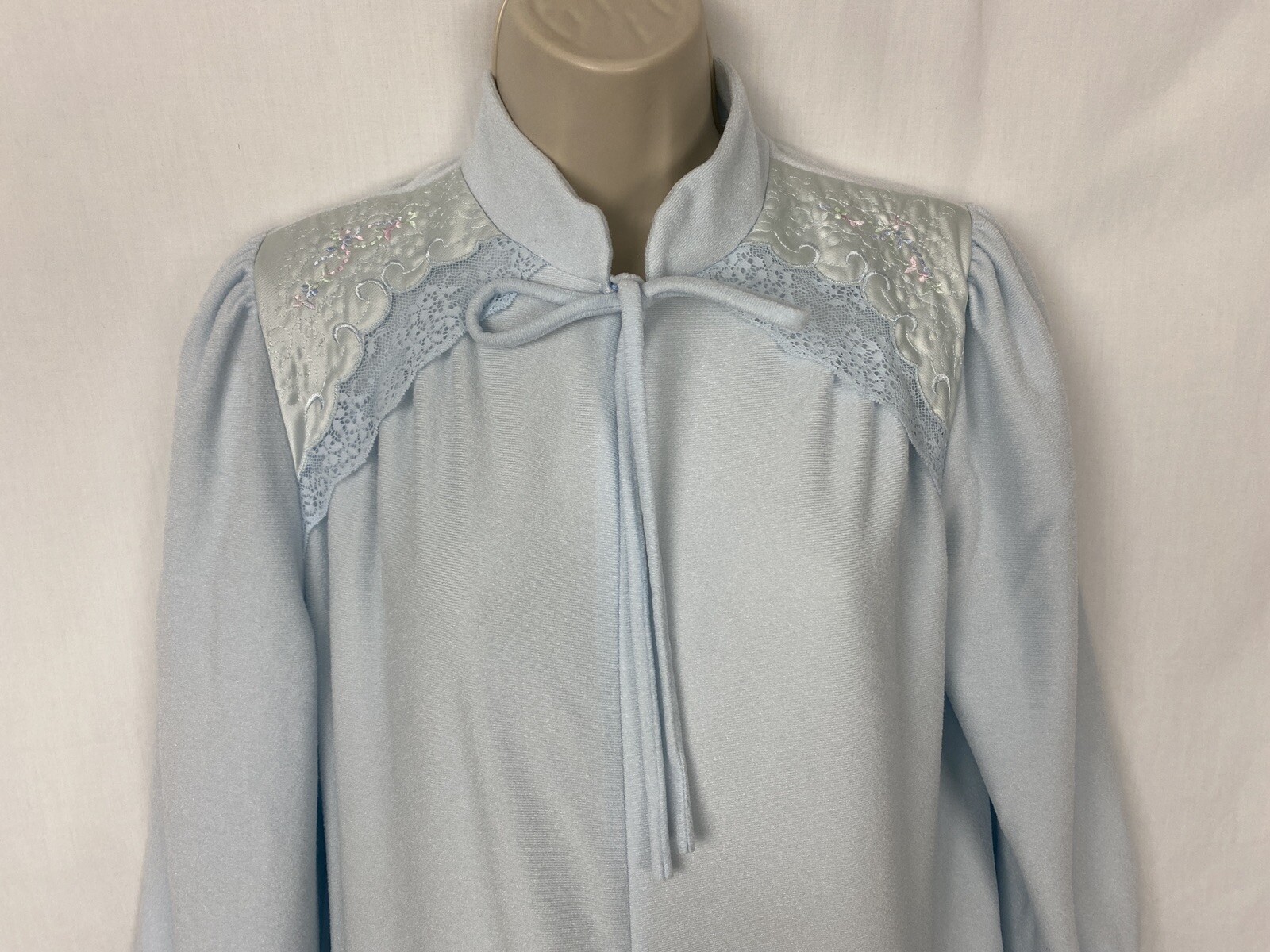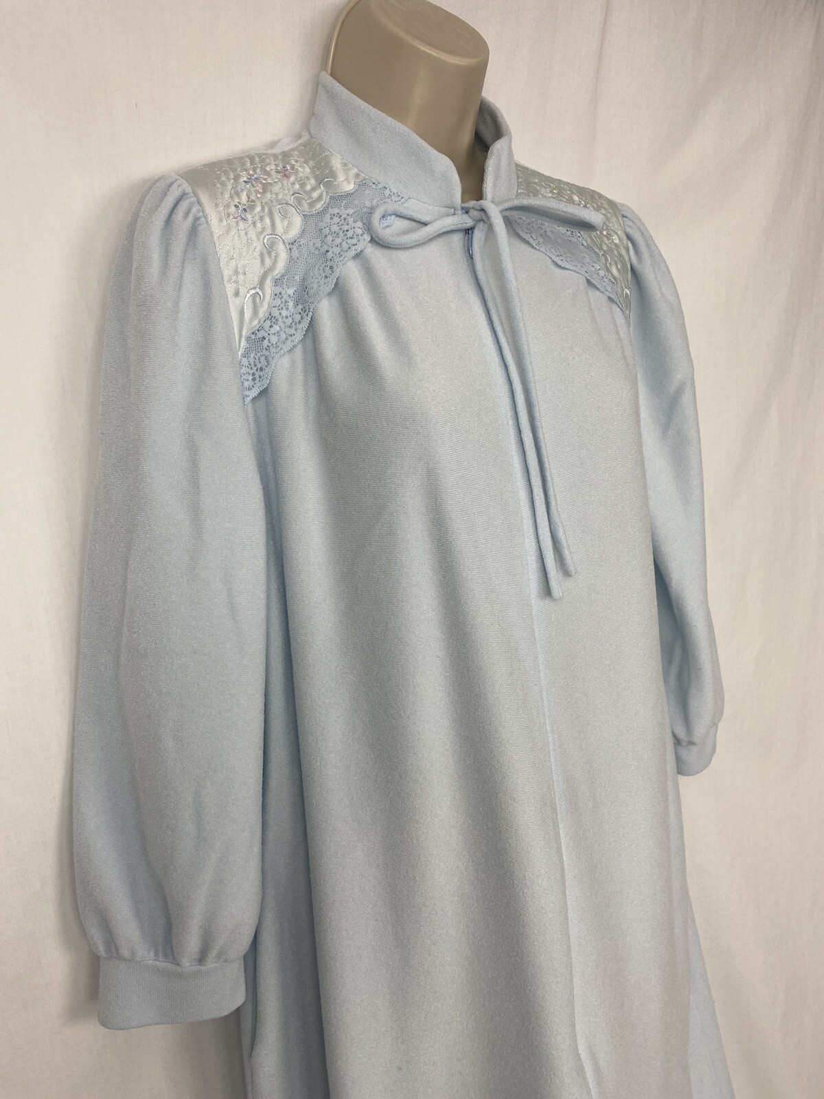 как выглядит Vanity Fair Vintage Robe Womens Small Brushed Nylon House Coat Long Muu Muu Blue фото