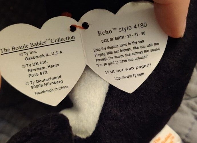 2 Ty Beanie Babies - Waves/Echo Whale Name Errors - Rare Tag Location