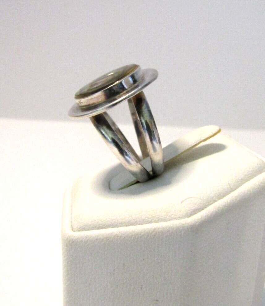 Beautiful Iridescent Abalone Shell 925 Sterling Silver Round Ring Sz. 6