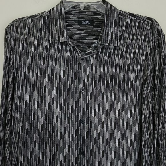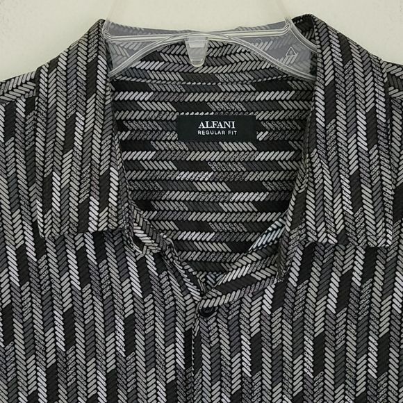 как выглядит Alfani Black Gray Print Dress Shirt L фото