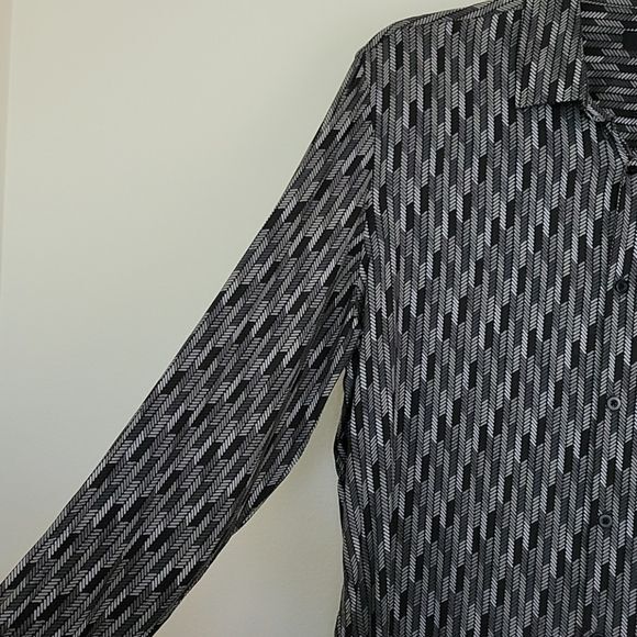 Alfani Black Gray Print Dress Shirt L