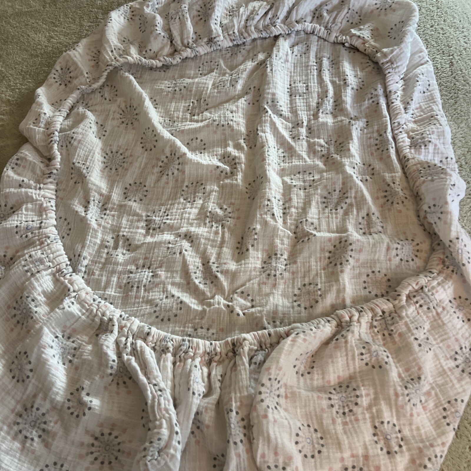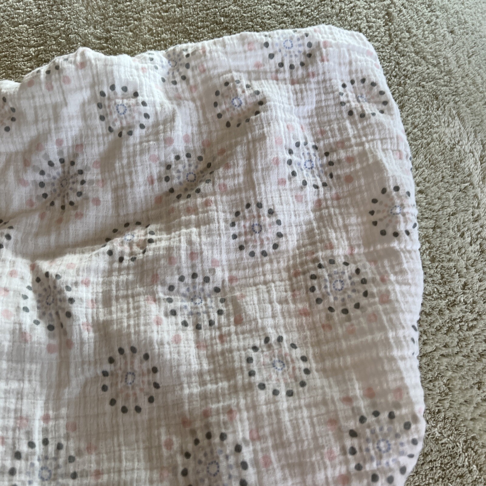 как выглядит Aden Anais Girls White Pink Gray Dots Fitted Crib Sheet фото