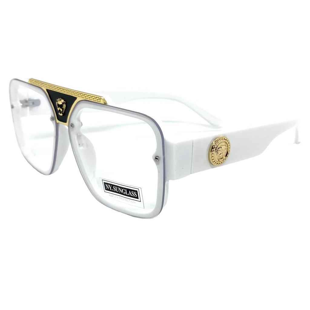 Men Classy Elegant Retro Hip Hop Style Clear Lens EYE GLASSES White Gold Frame