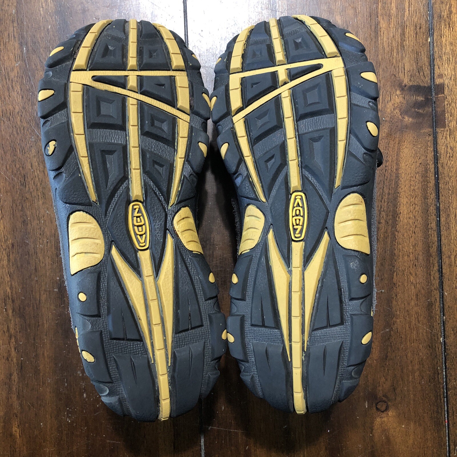 как выглядит Keen Kids Unisex Size 4 Shoes Lace Up Bungee Suede Hiking Outdoors Gray Yellow фото