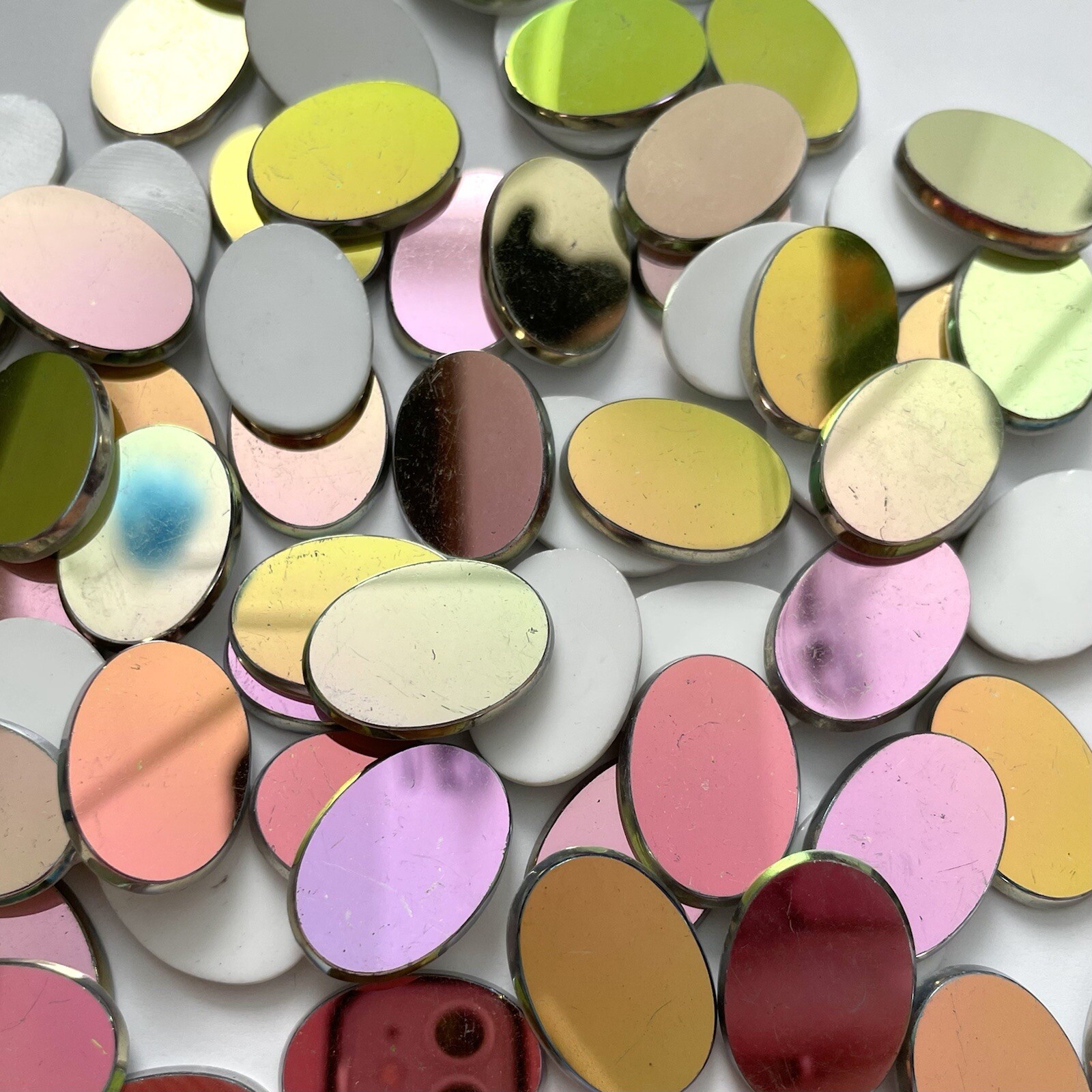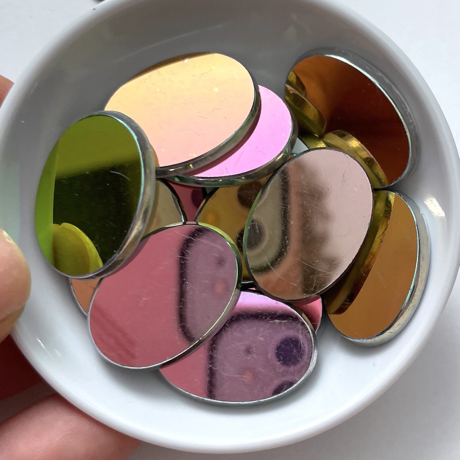 6 Vintage Mirrored Cabochons Glass 25x18 Pink Purple Gold Green Vitrail C14-41