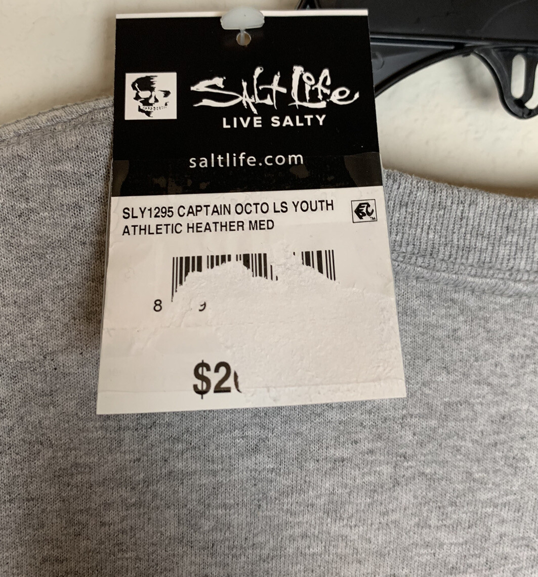 как выглядит SALT LIFE youth Sz Medium Long Sleeve Gray Graphic T-shirt Captain Octo NEW фото
