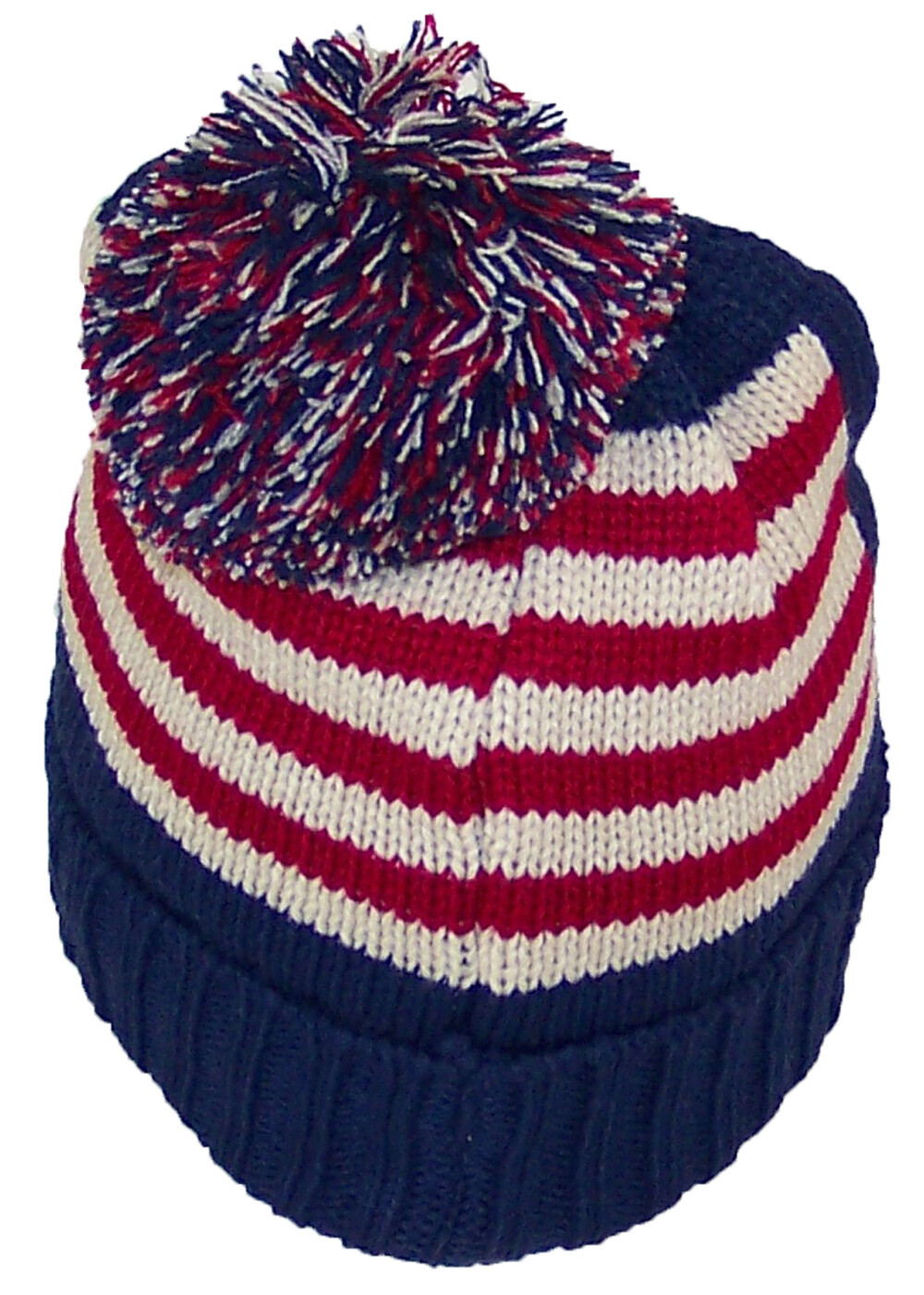 Best Winter Hats Adult American Flag Cuffed Knit Beanie W/Pom Pom One Size