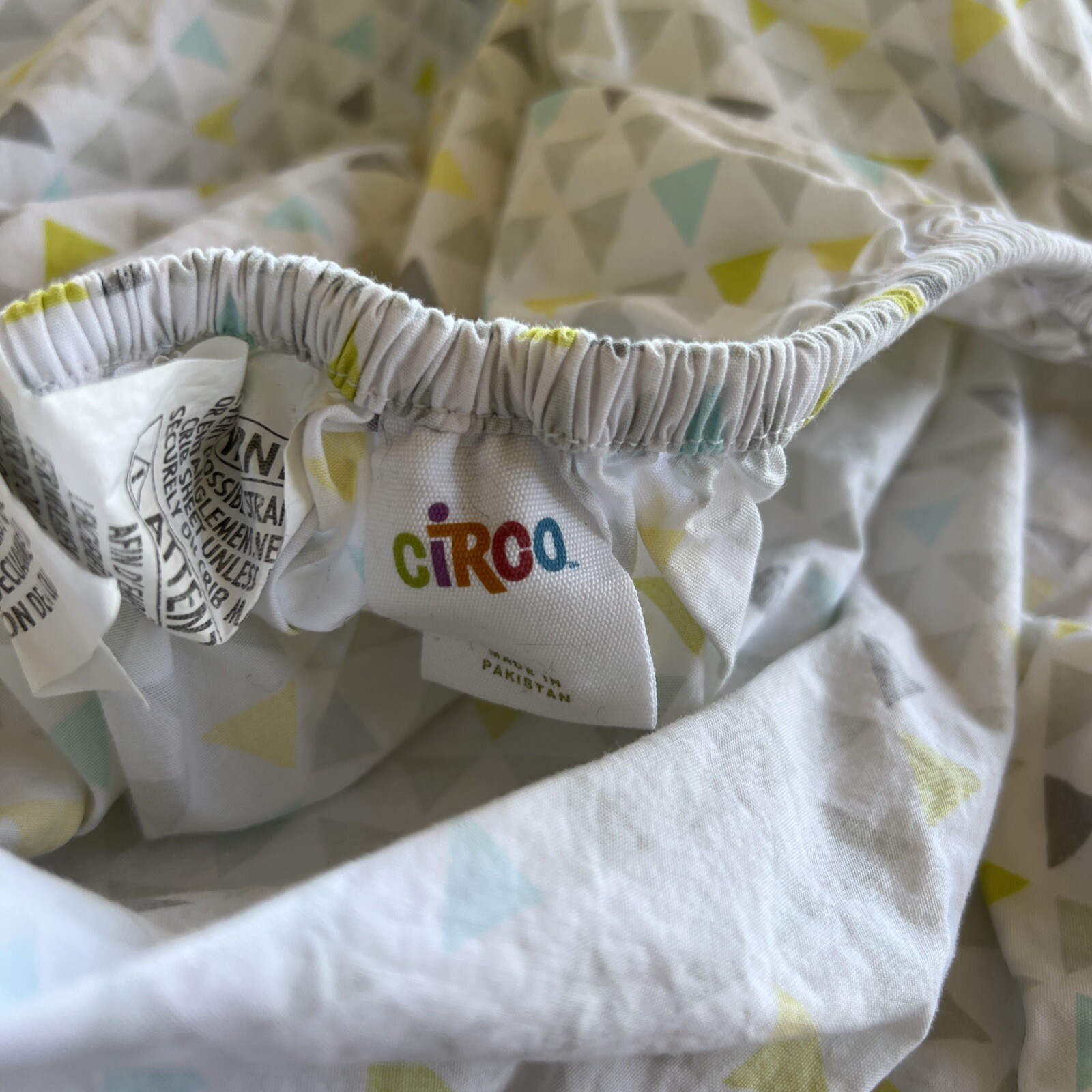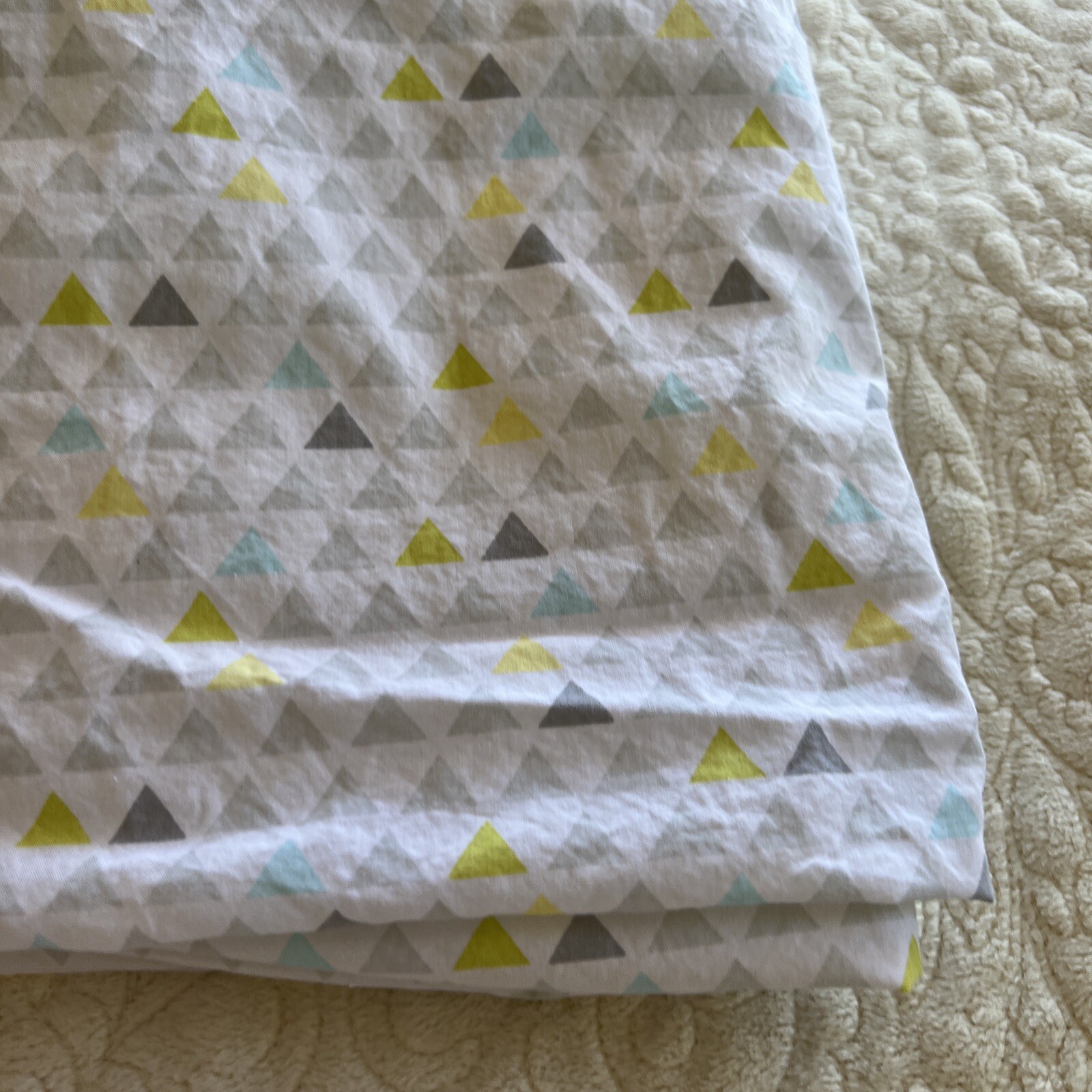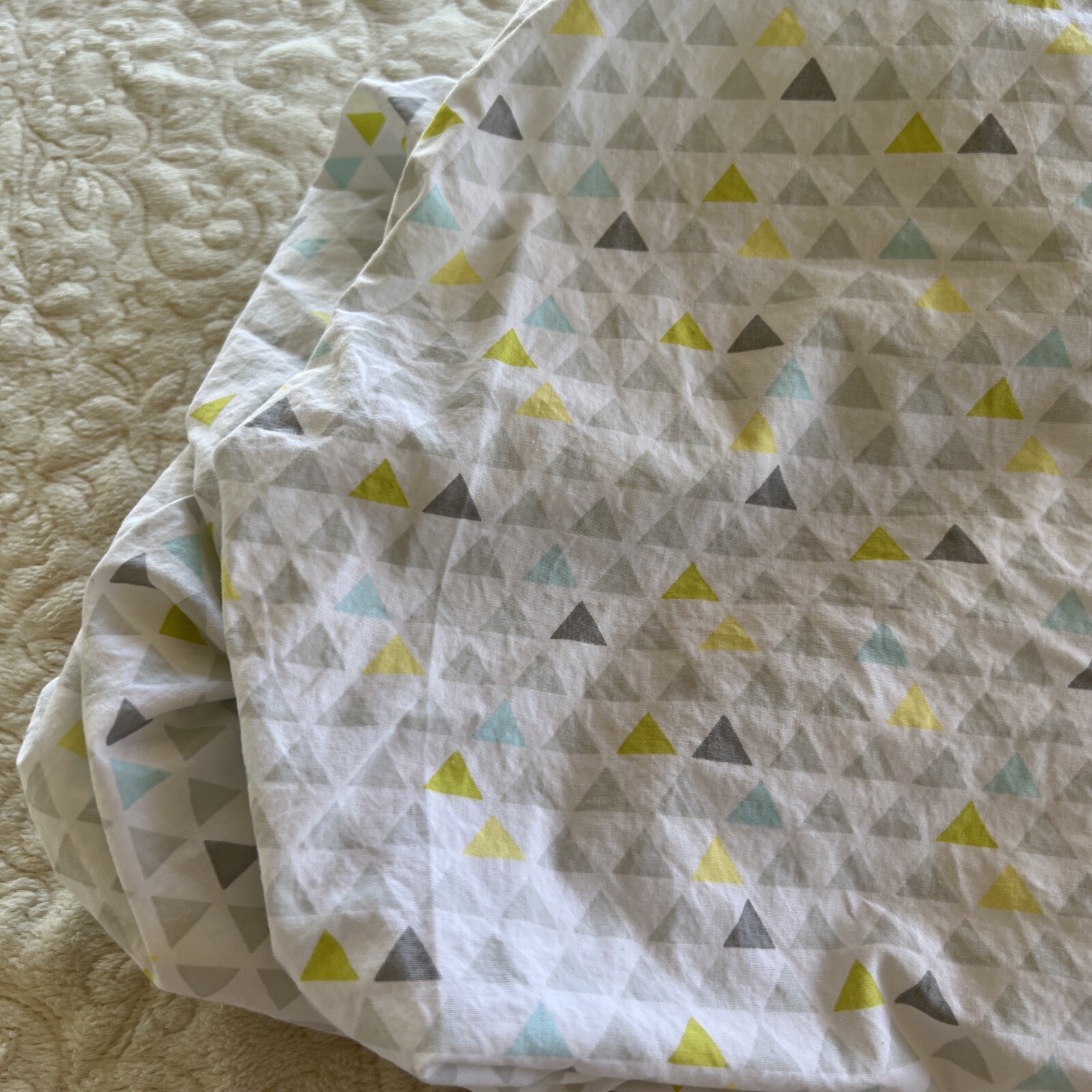 Circo Unisex White Yellow Gray Teal Triangles Fitted Crib Sheet Toddler Bed