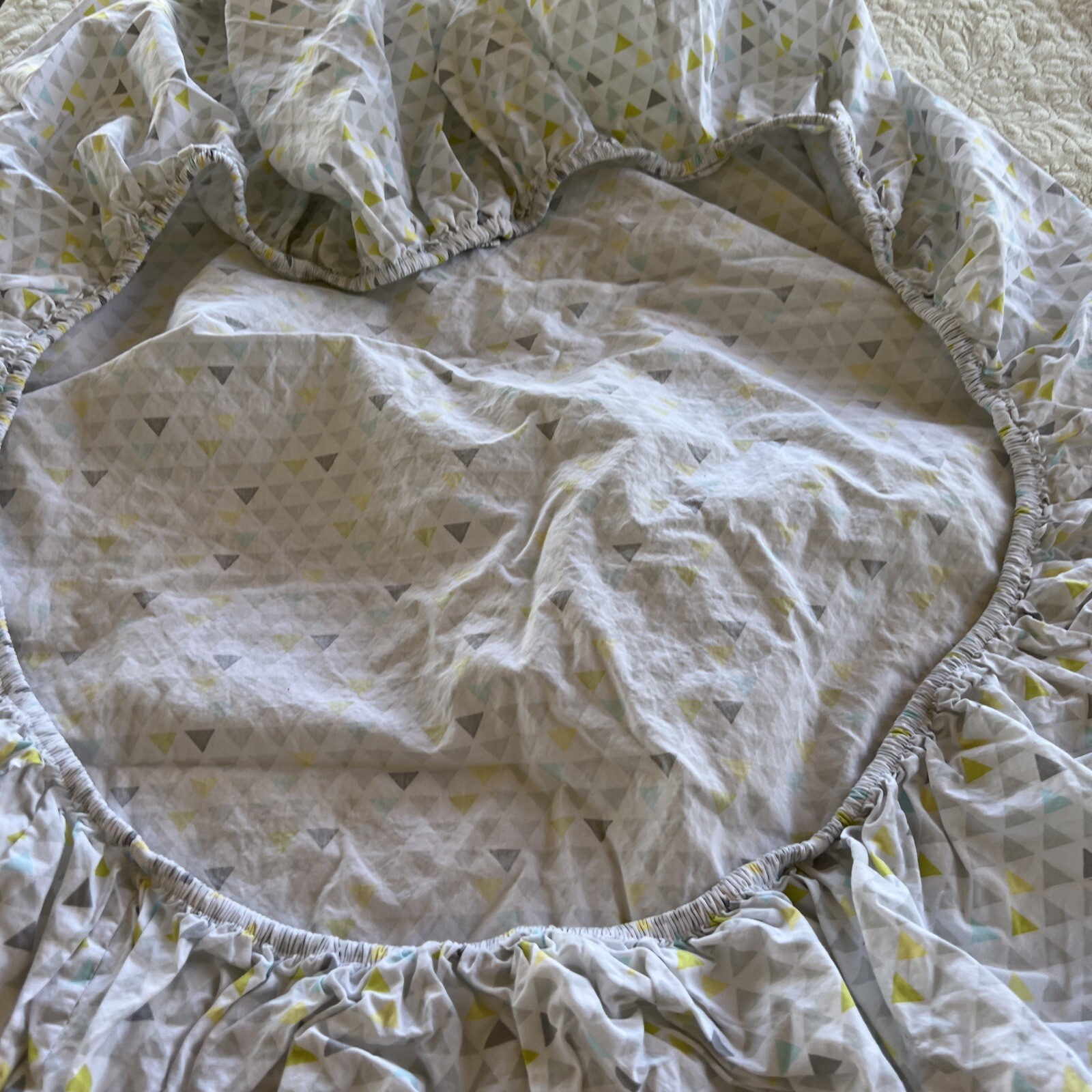 как выглядит Circo Unisex White Yellow Gray Teal Triangles Fitted Crib Sheet Toddler Bed фото