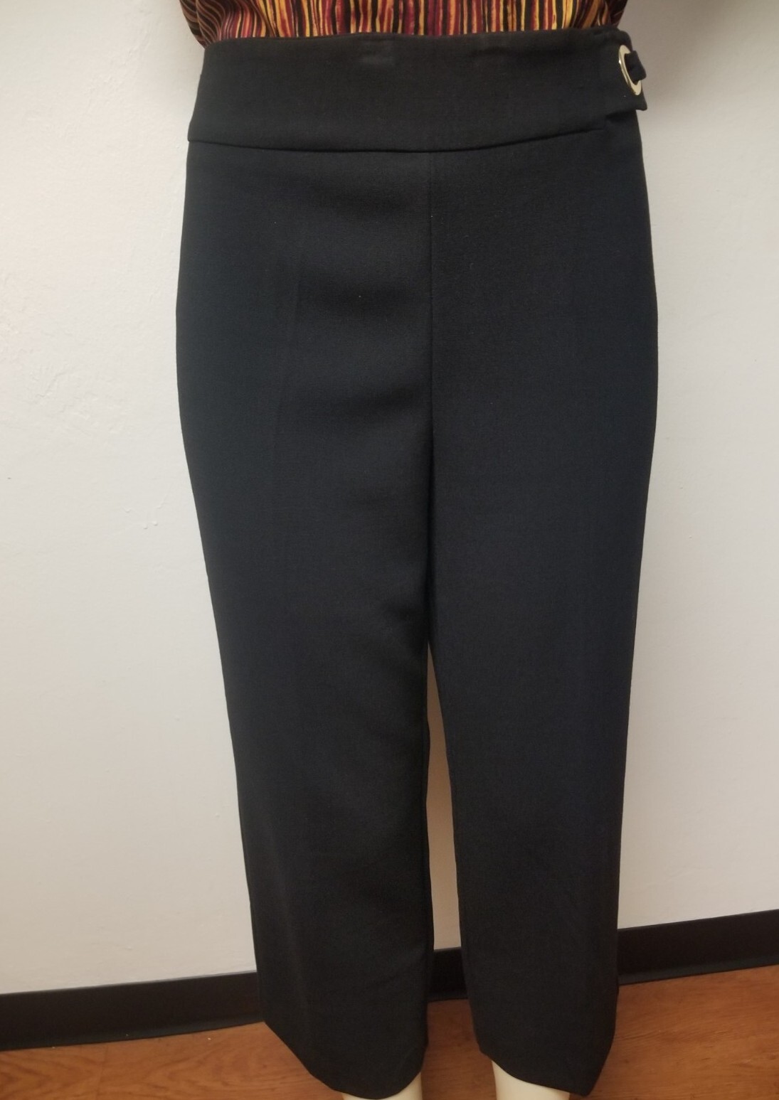 как выглядит CHICOS Zenergy Black Cropped Pant With Goldtone Hardware On Waist. Size - 10 фото