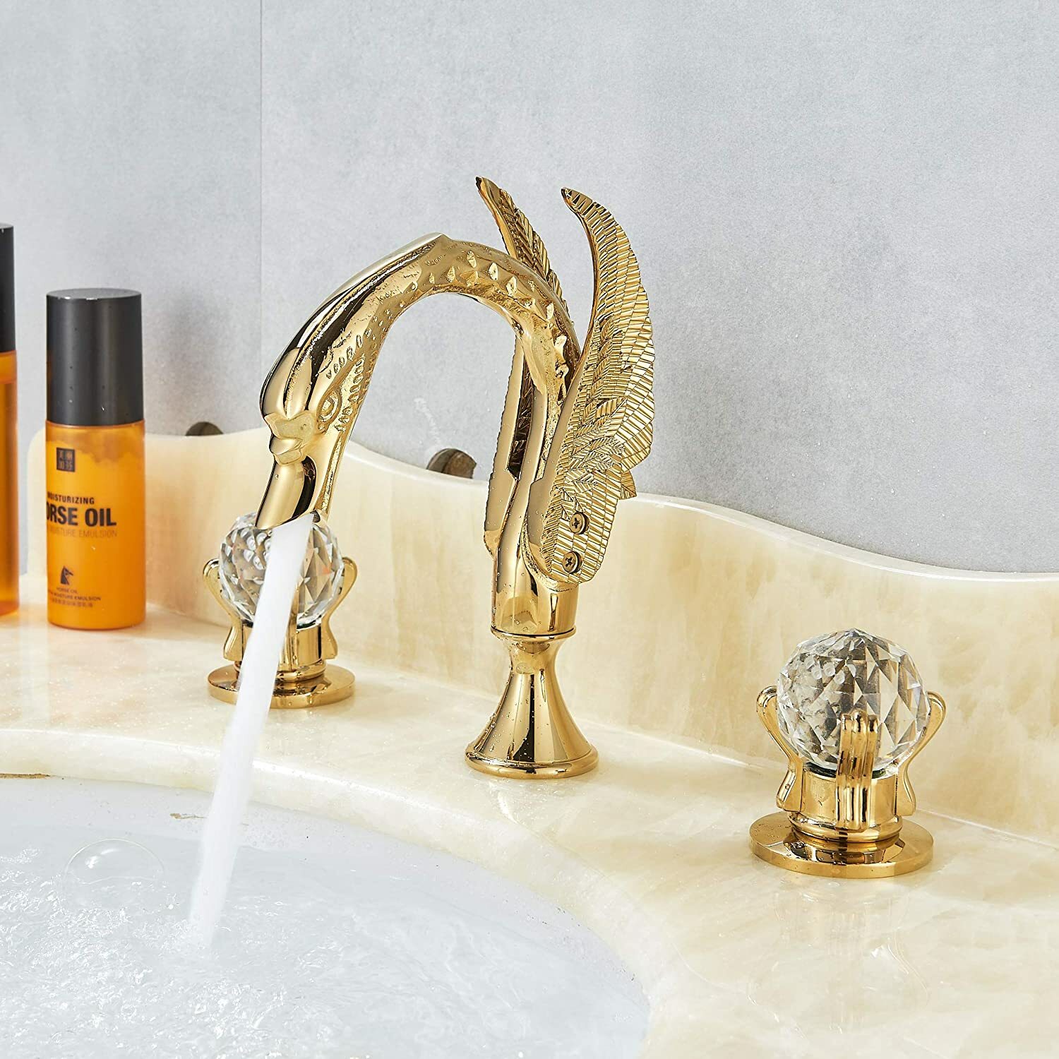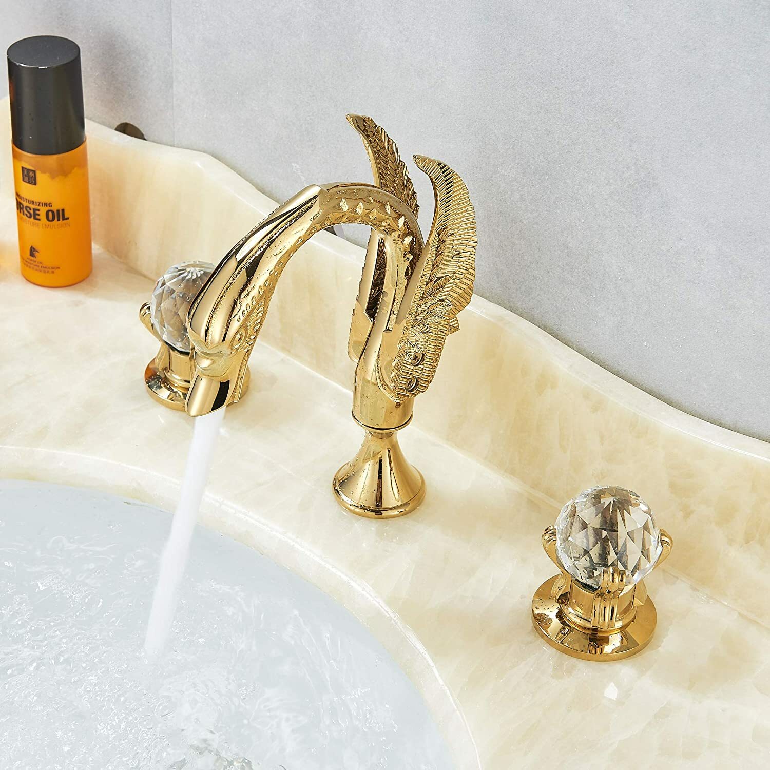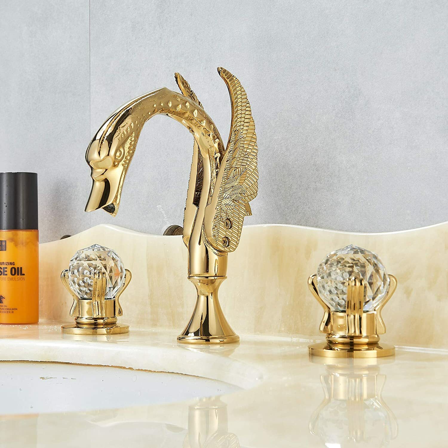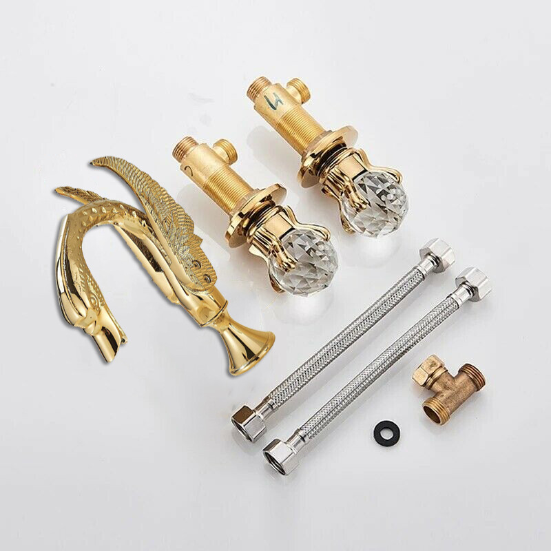 Gold Swan Bathroom Sink Faucet 8Widespread Waterfall Vanity 3 Holes Mixer Tap
