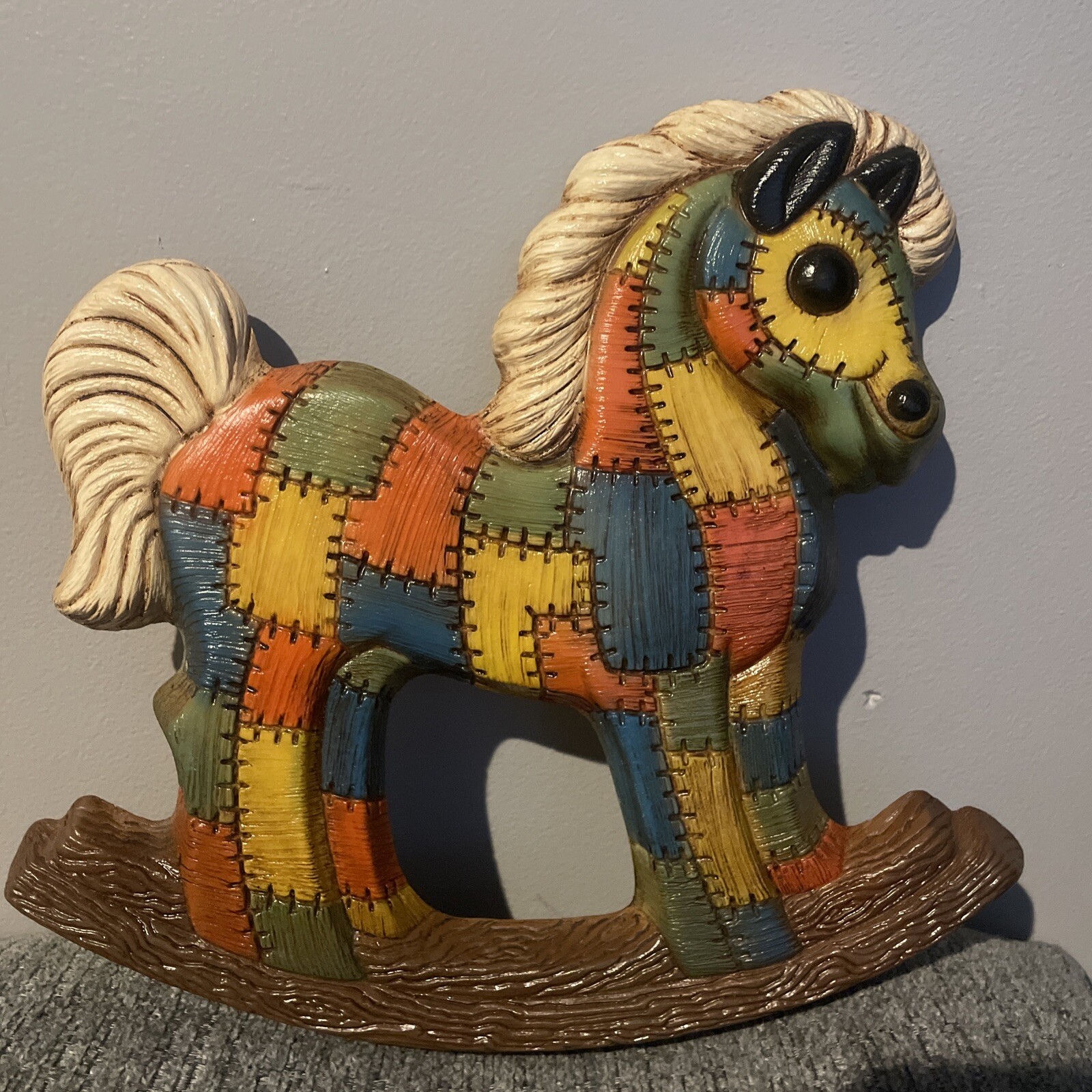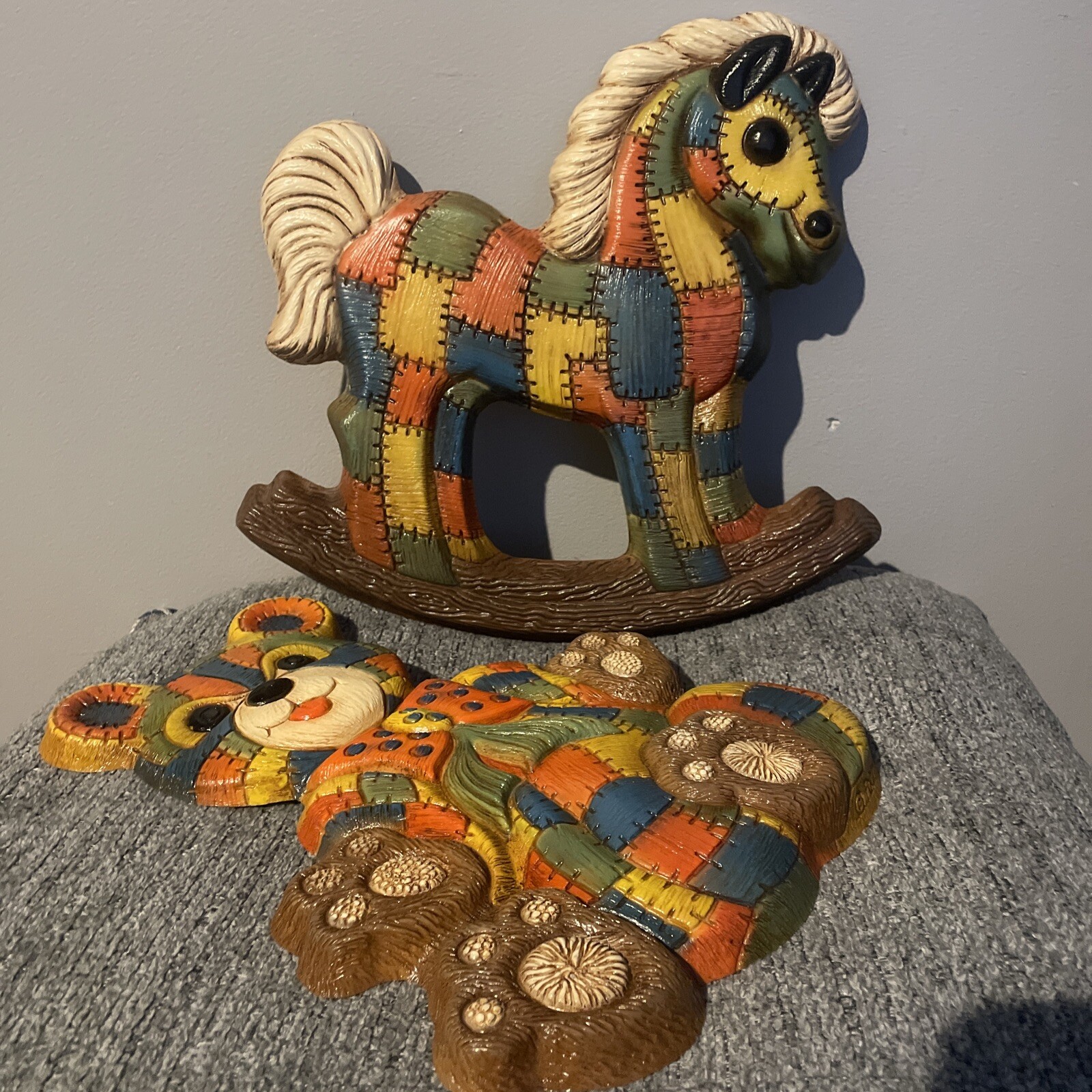 • Foam Craft Nursery Decor Patchwork Rocking Horse And Teddy Bear Wall Hanging Vtg